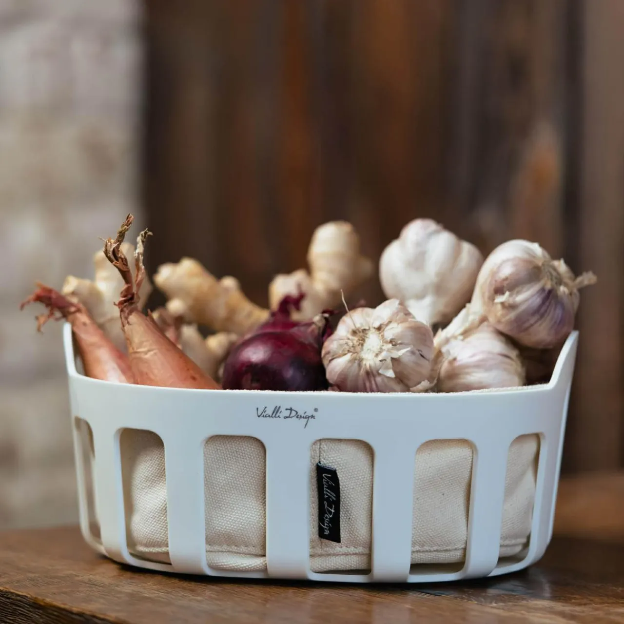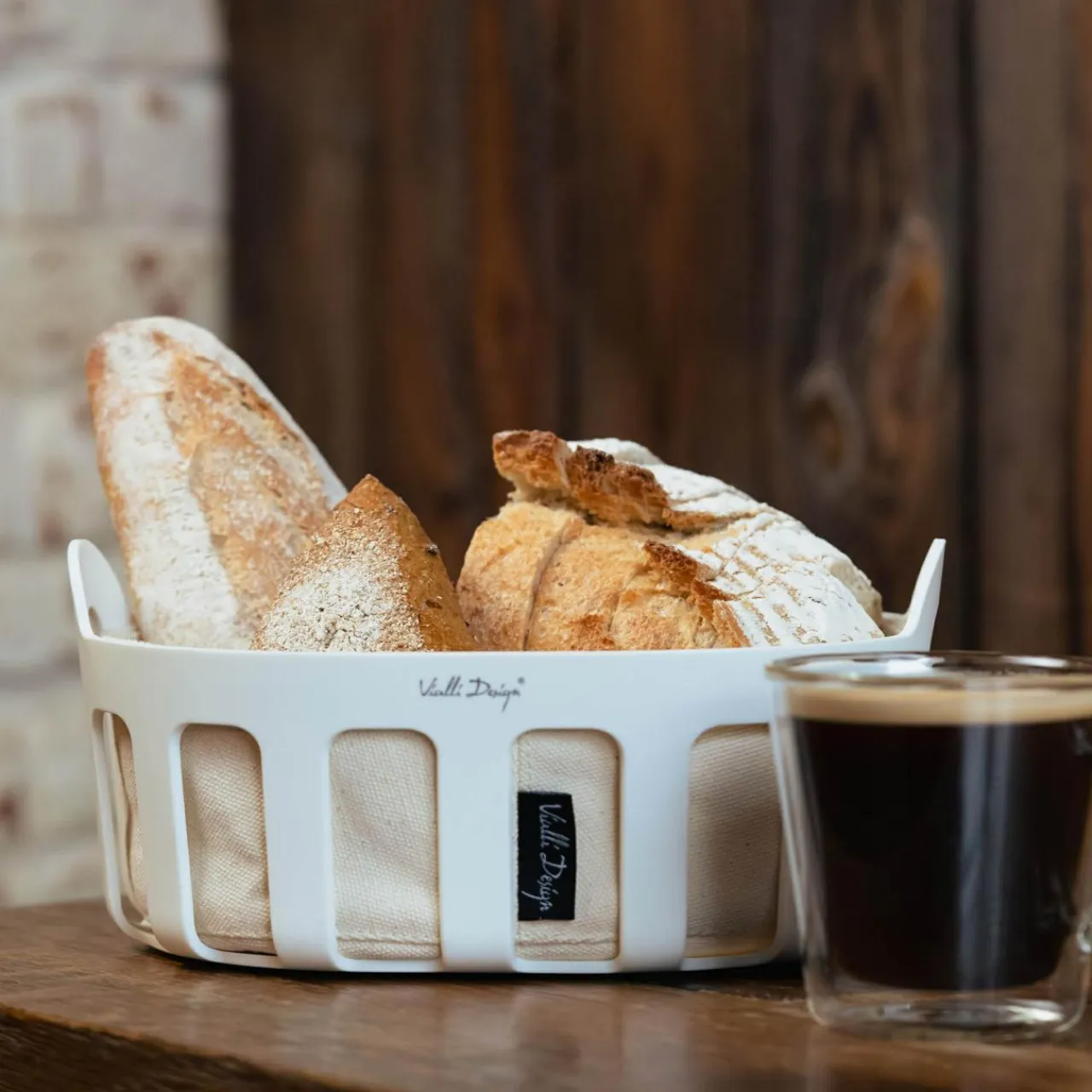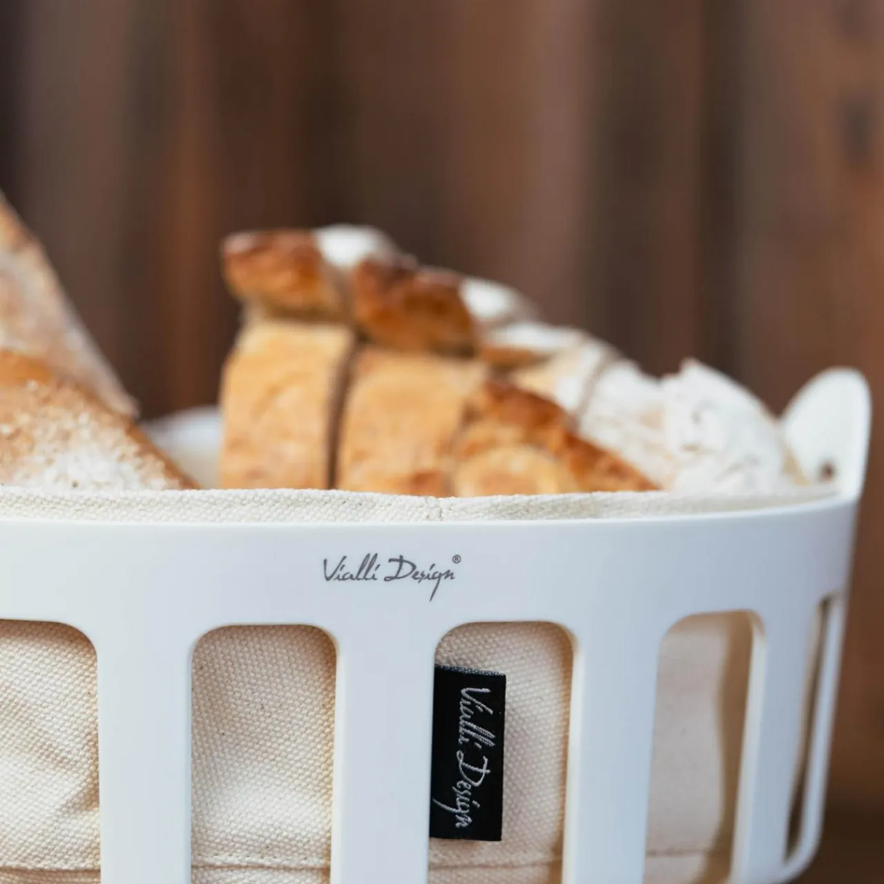 Zastawa Śniadaniowa|Vialli Design Koszyk na pieczywo z bawełnianym wkładem biały LIVIO