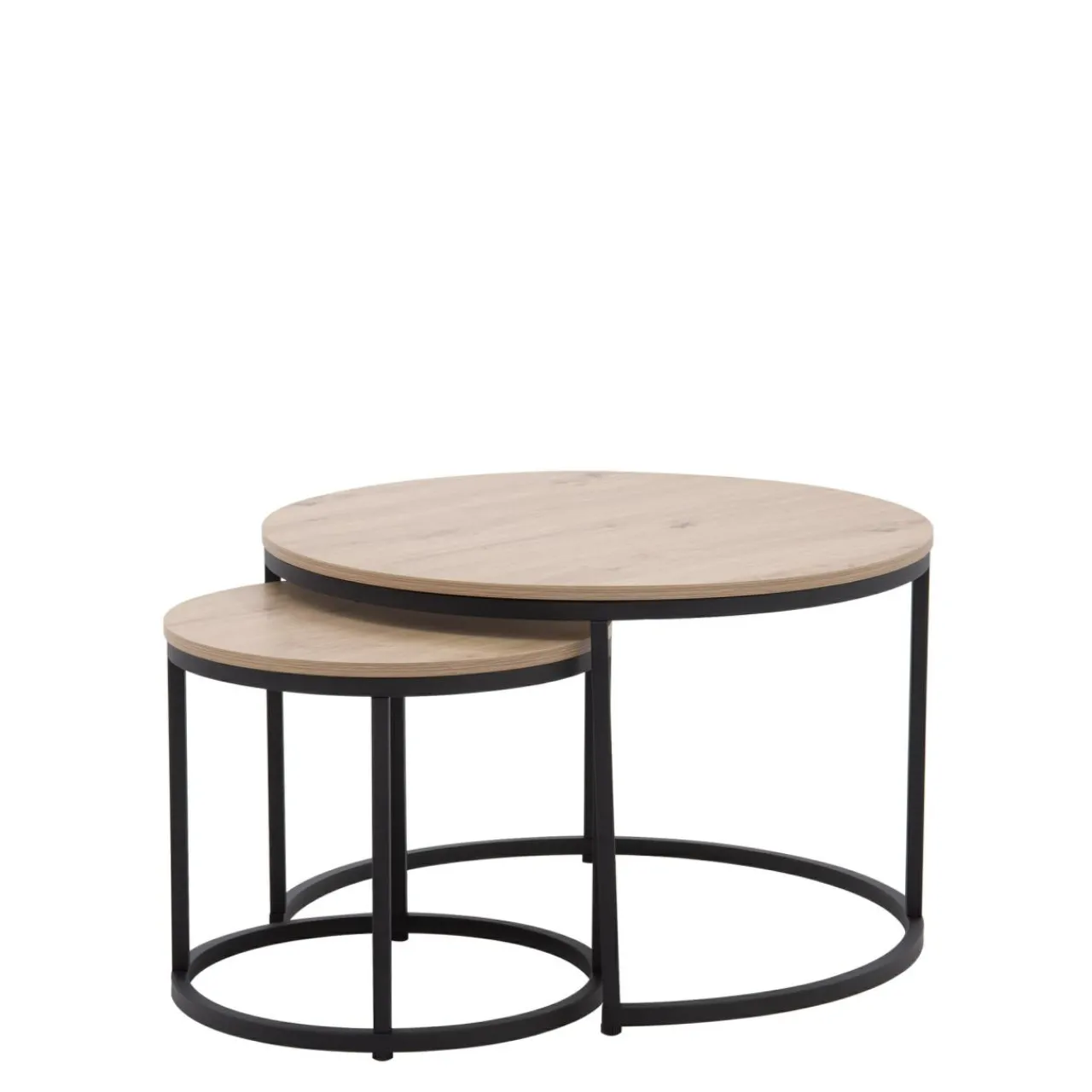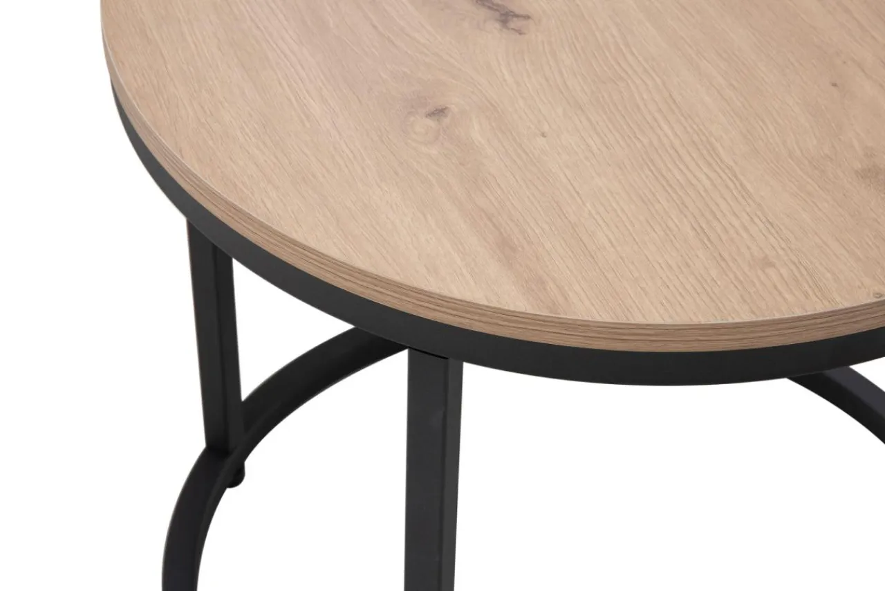 Blaty stolików zostały wykończone okleiną drewnopodobną. Rysunek sęków i słojów przypomina naturalne, jasne drewno.