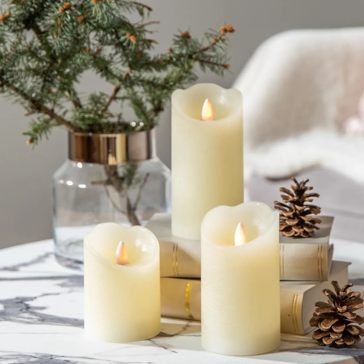 - Każda świeca ma inną wysokość, co pozwala na stworzenie efektownej kompozycji. Umieść je razem na stole, komodzie czy półce, aby uzyskać efektowny wygląd.