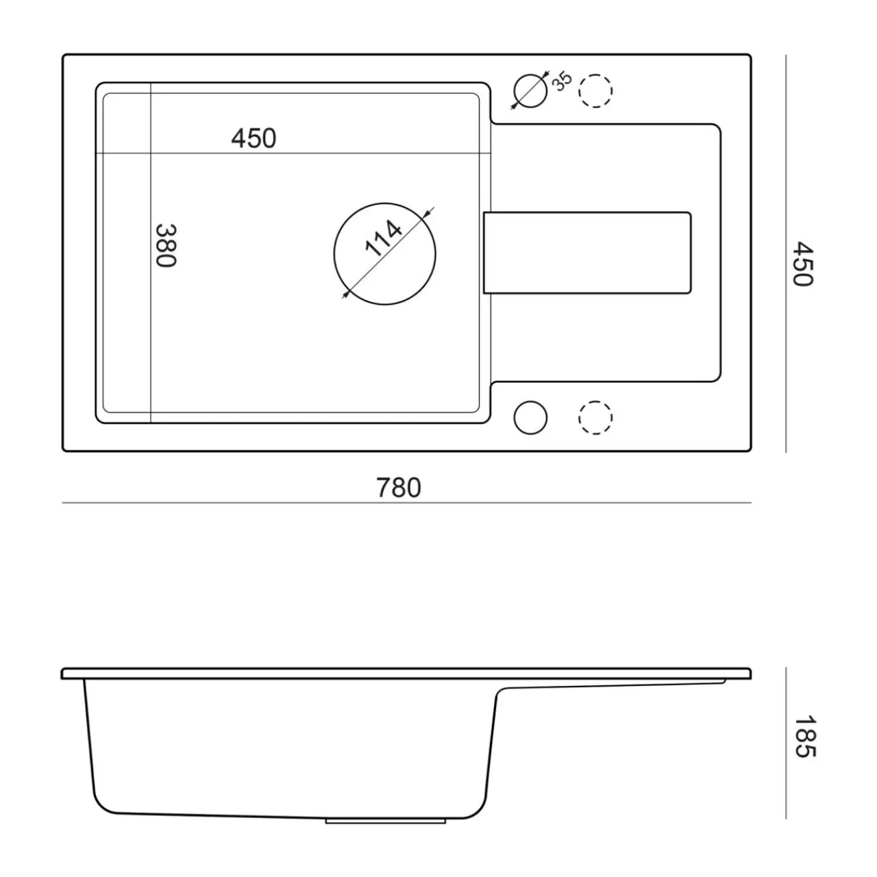 - Głębokość zlewozmywaka 185mm