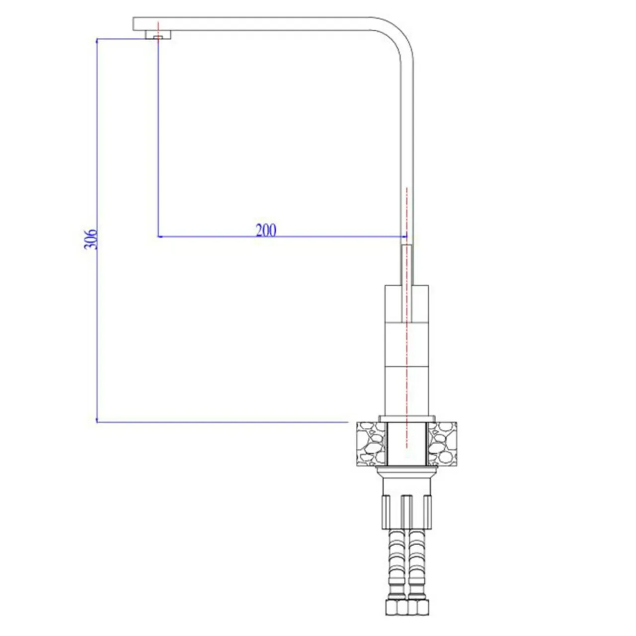 Wygięta w kształt odwróconej litery „L” wylewka to funkcjonalne rozwiązanie, które sprawdza się w połączeniu z geometrycznym kształtem zlewozmywaka.