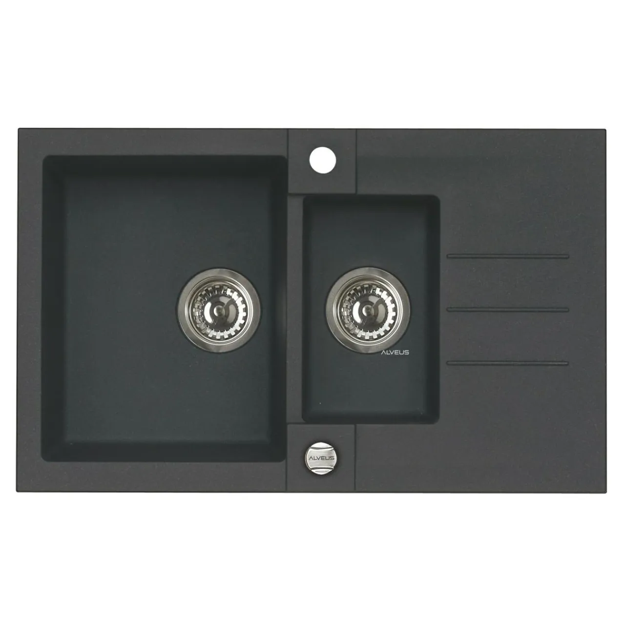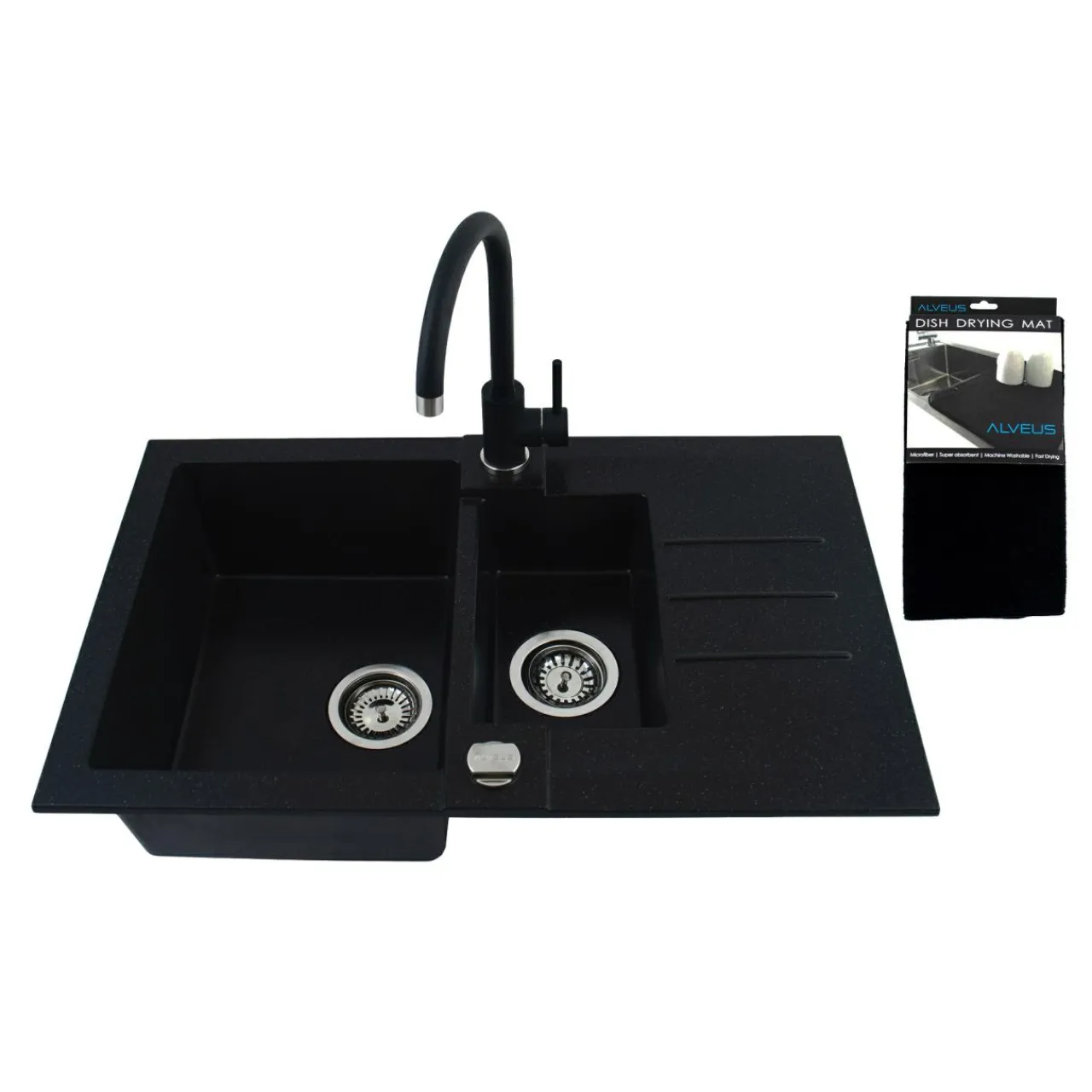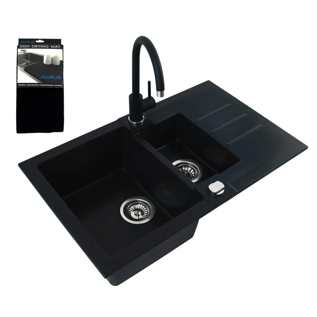 - Wykończony w czarnym kolorze ma 2 komory i ociekacz.