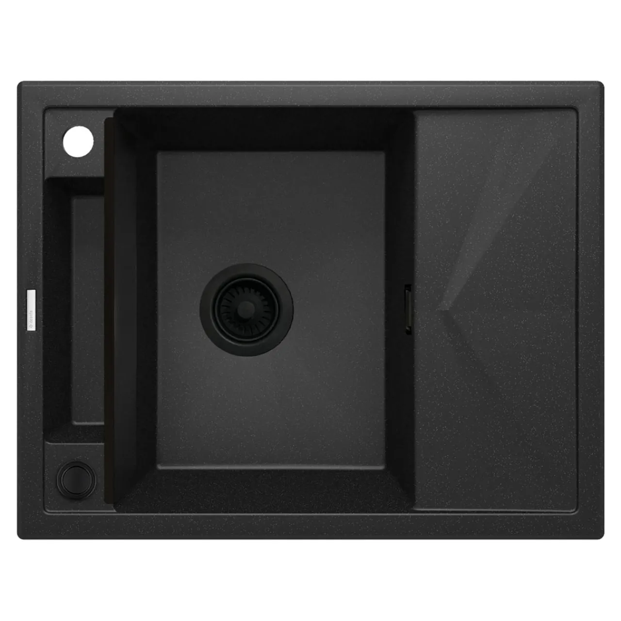 Zlewozmywak MAGNETIC ZRM G11A posiada fabrycznie wykonany otwór na baterię oraz automatyczne zamknięcie odpływu.