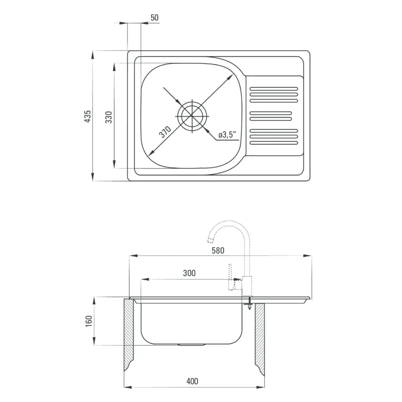 Doskonale komponuje się zarówno z nowoczesnymi, jak i klasycznymi meblami kuchennymi. Charakteryzuje go prosta forma oraz funkcjonalność. Posiada pojedynczą komorę z krótkim ociekaczem i odpływ 3,5 cala.