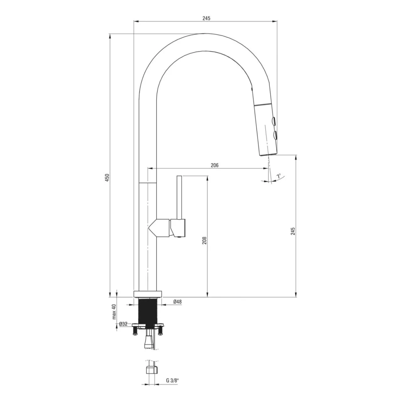 - zasięg wylewki: 20,6 cm