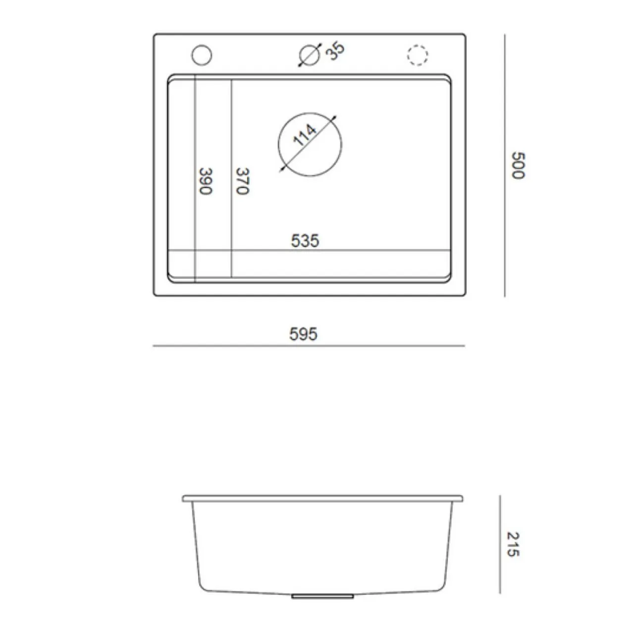- Szerokość zlewozmywaka 59,5 cm,
