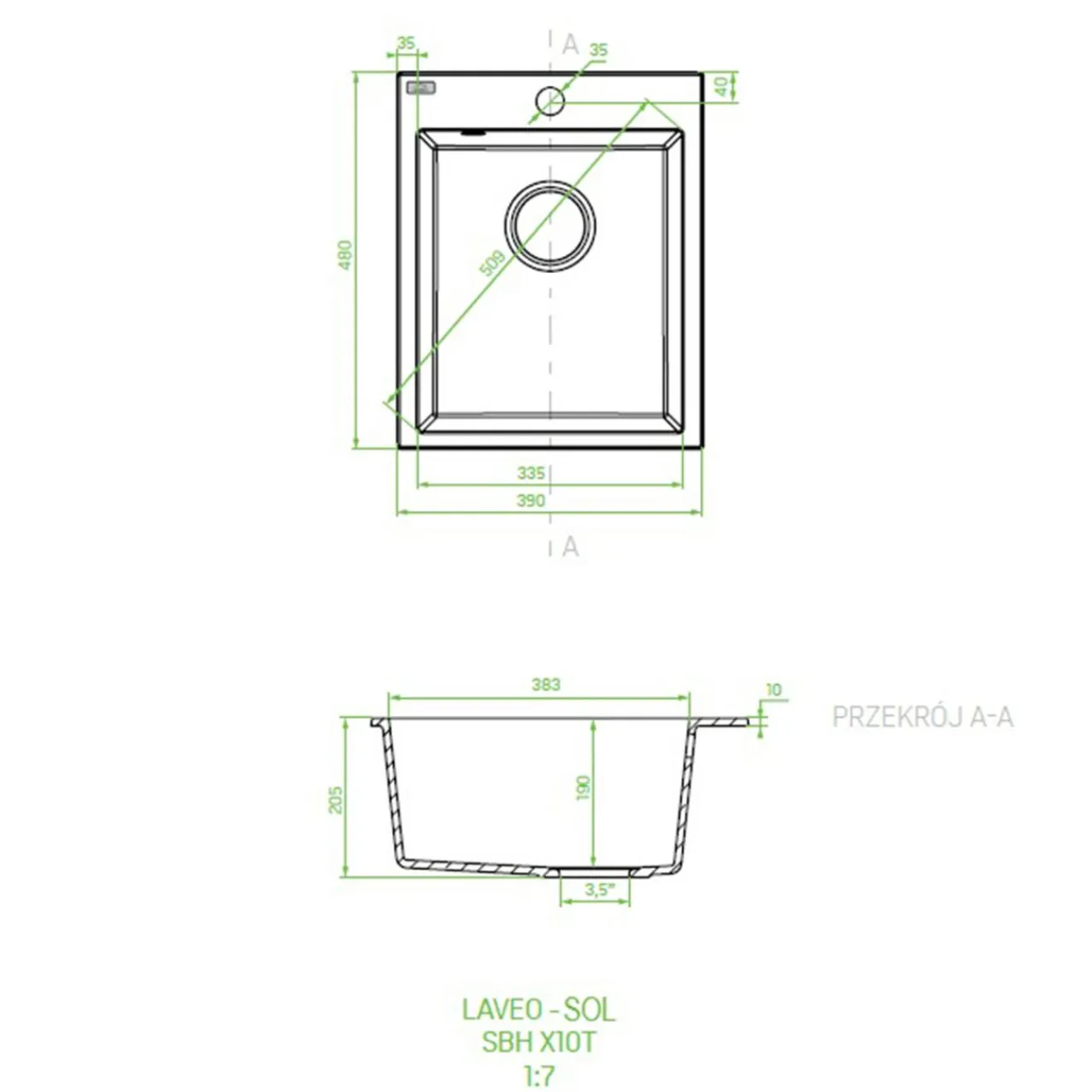 - Średnica odpływu: 3,5 cala