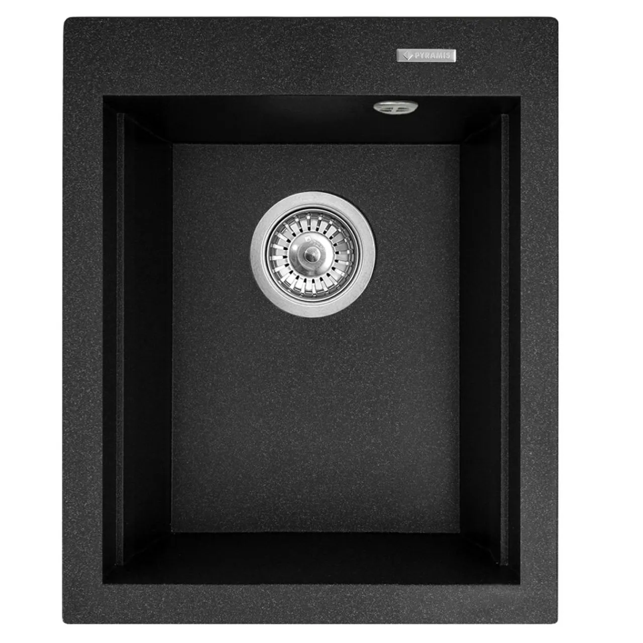 - Jego czarny kolor będzie dobrze wyglądał w otoczeniu bieli, szarości oraz blatów o kamiennym wzorze i kolorze.
