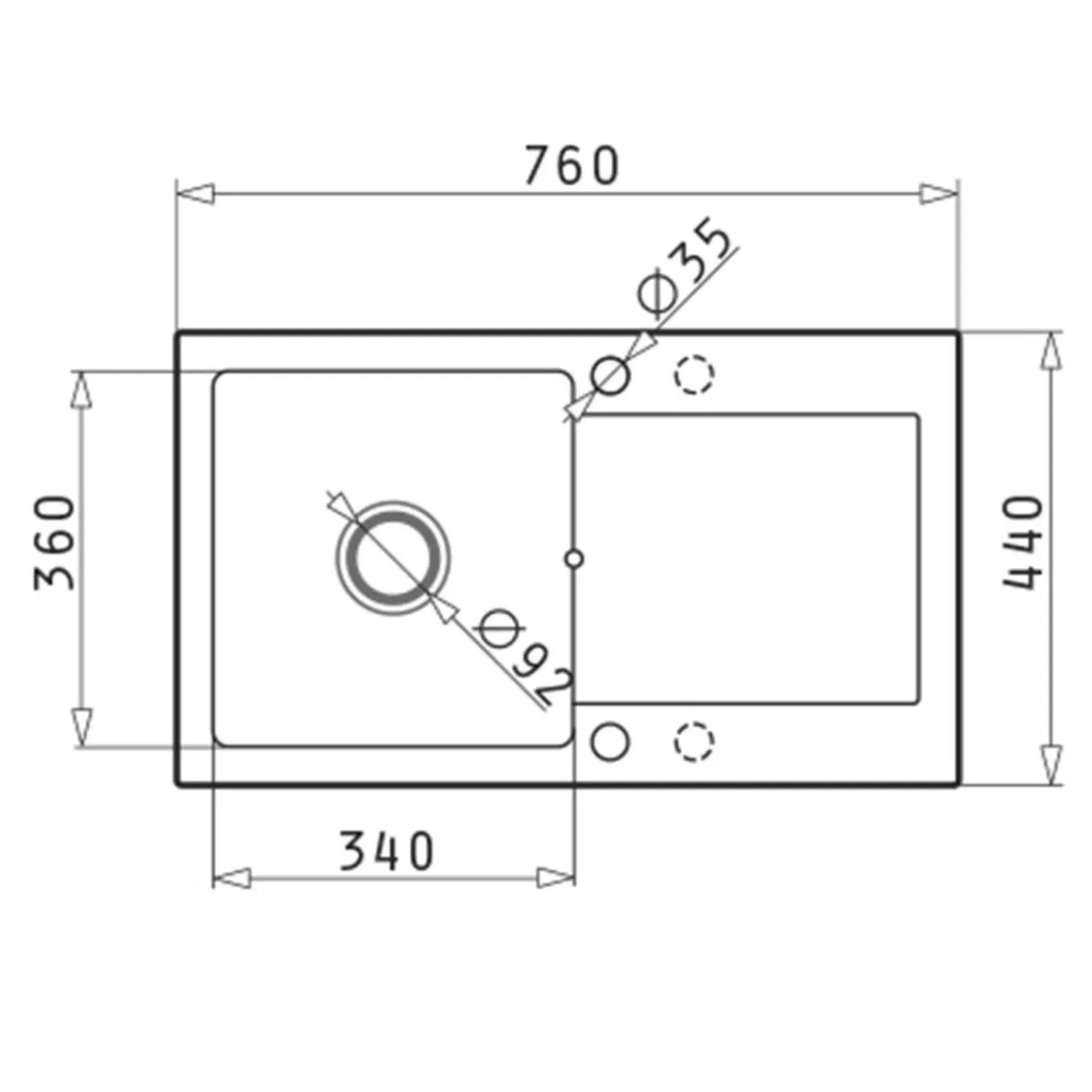 Zlewozmywak ZEFIR z dużym ociekaczem został stworzony w technologii Pyragranit. Cieszy się trwałością, wysoką odpornością na uderzenia, zarysowania i oddziaływanie wysokich i niskich temperatur. Wymiary 76×44 cm sprawiają, że można go dopasować do szafki o szerokości 45 cm.