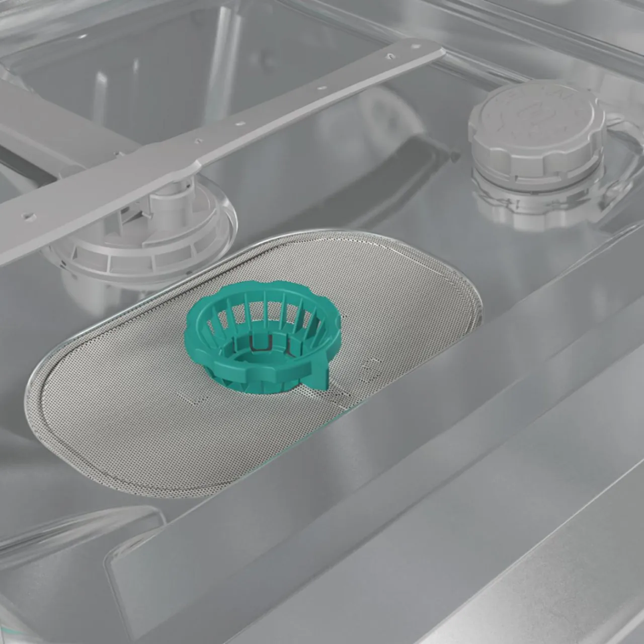 Zmywarka posada automatyczny system, który wypłukuje resztki żywności oraz dba o czystość filtra.
