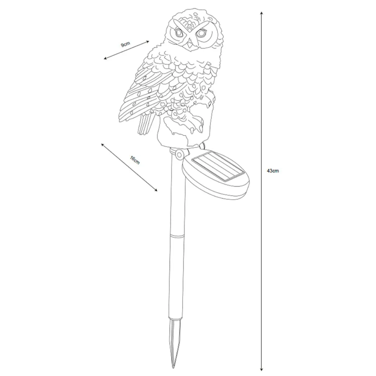 - Górna część jest ozdobiona dekoracją w postaci podświetlonej figurki sowy.