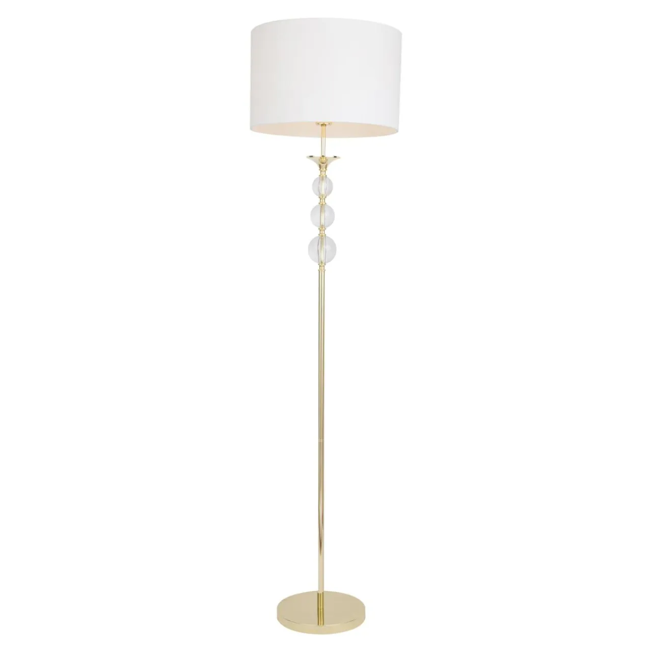 Podstawa lampy REA została wykonana z metalu i ozdobiona wykończeniem w kolorze złota. Trzy szklane kule dodatkowo upiększają smukłą nóżkę lampy. Pod względem stylistycznym nadają jej cech glamour oraz komponują się wizualnie ze złotym wykończeniem.