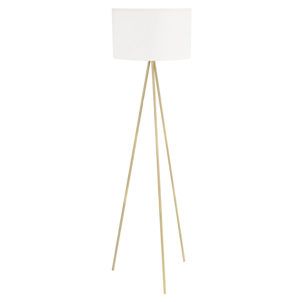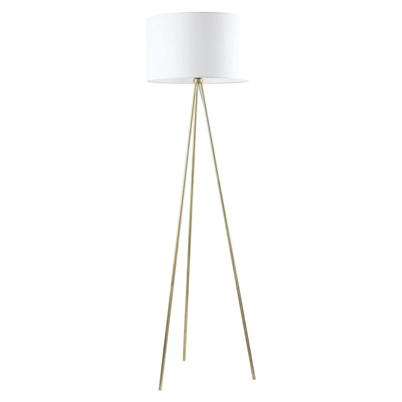 Złote wykończenie dodaje przyjemnego, ciepłego klimatu i łączy się wizualnie z abażurem w białym kolorze.