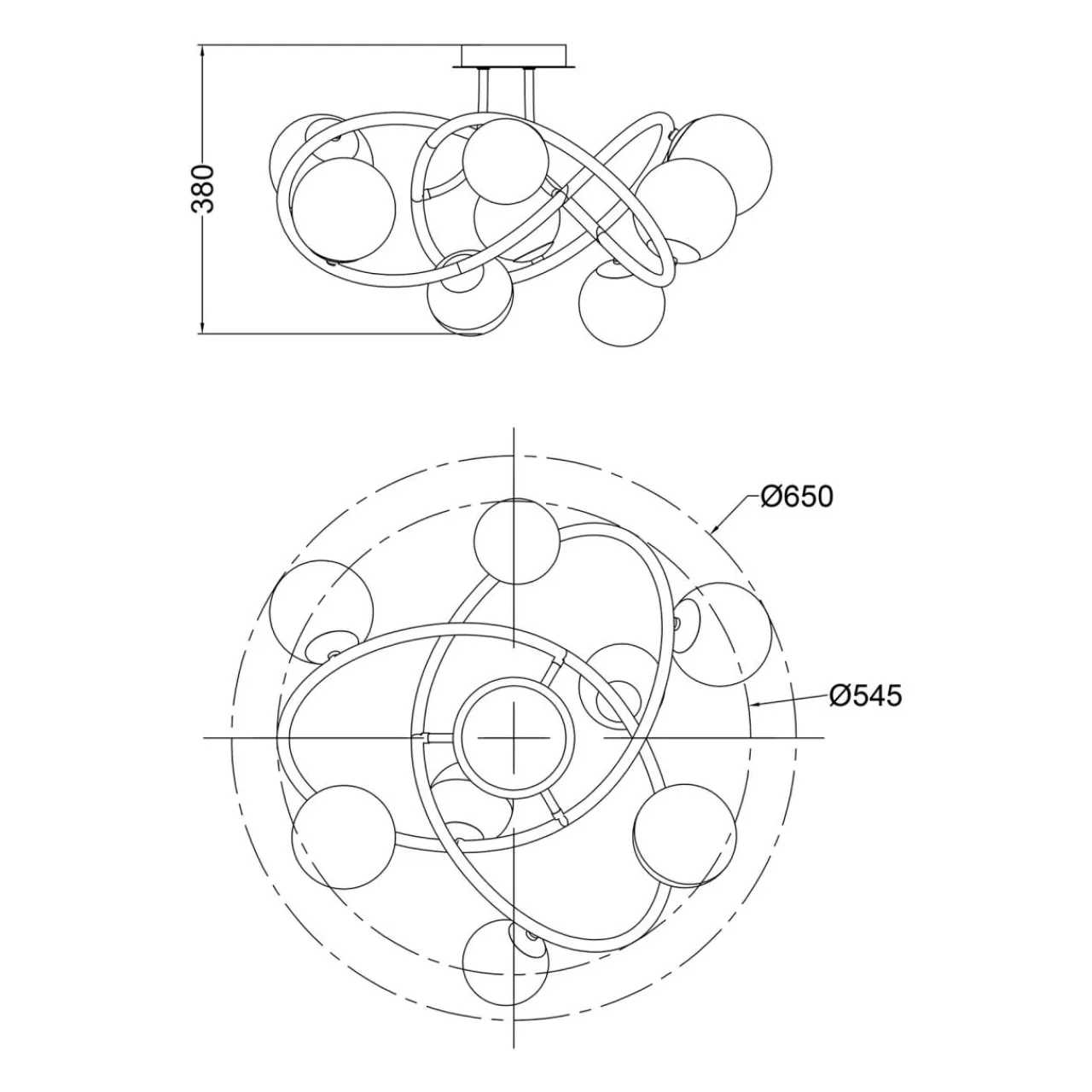 Jej czarna oprawa o kształcie wstęgi Möbiusa została upiększona aż 8 kulistymi kloszami o wykończeniu w perłowej bieli i matowego złota.