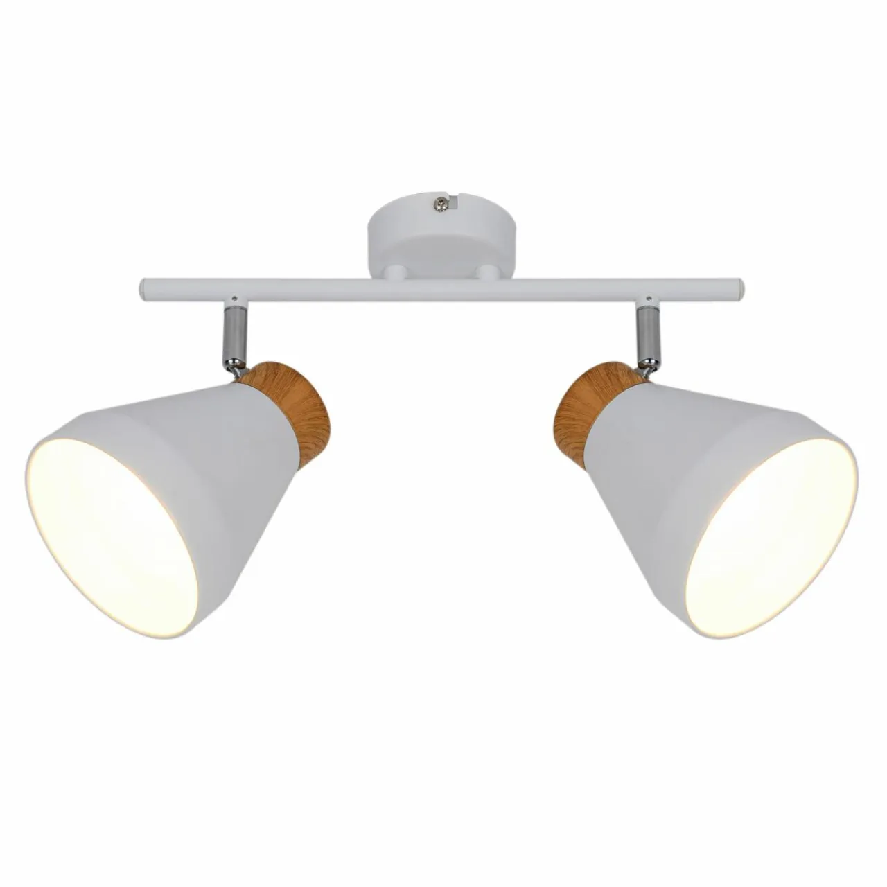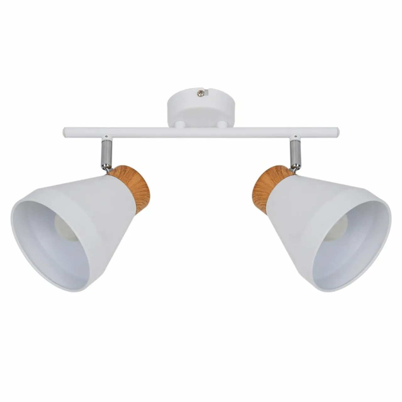 Wizualnie łączy surowy nowoczesny styl z naturalnością. Biały kolor jest dopełniony elementami w odcieniu jasnego drewna w górnej części kloszy. Komponuje się z meblami i dekoracjami w podobnej tonacji, zatem możesz lampę wykorzystać jako dopełnienie wnętrz w stylu nowoczesnym oraz skandynawskim.
