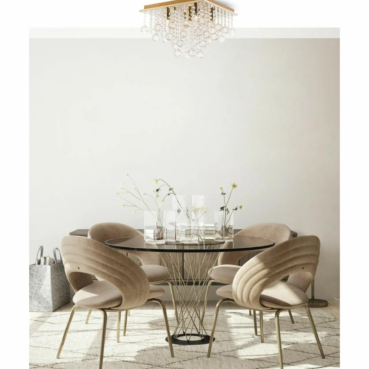 Fantazyjny model oświetlenia budzi skojarzenia z luksusem. Jest również świetnym dodatkiem do nowoczesnych aranżacji, nawiązujących do nowojorskich apartamentów. Obudowa w złotej, połyskującej kolorystyce rozjaśnia pomieszczenie, a spływające delikatnie z sufitu, krople kryształków rozpraszają światło i tworzą niepowtarzalną atmosferę w pomieszczeniu.