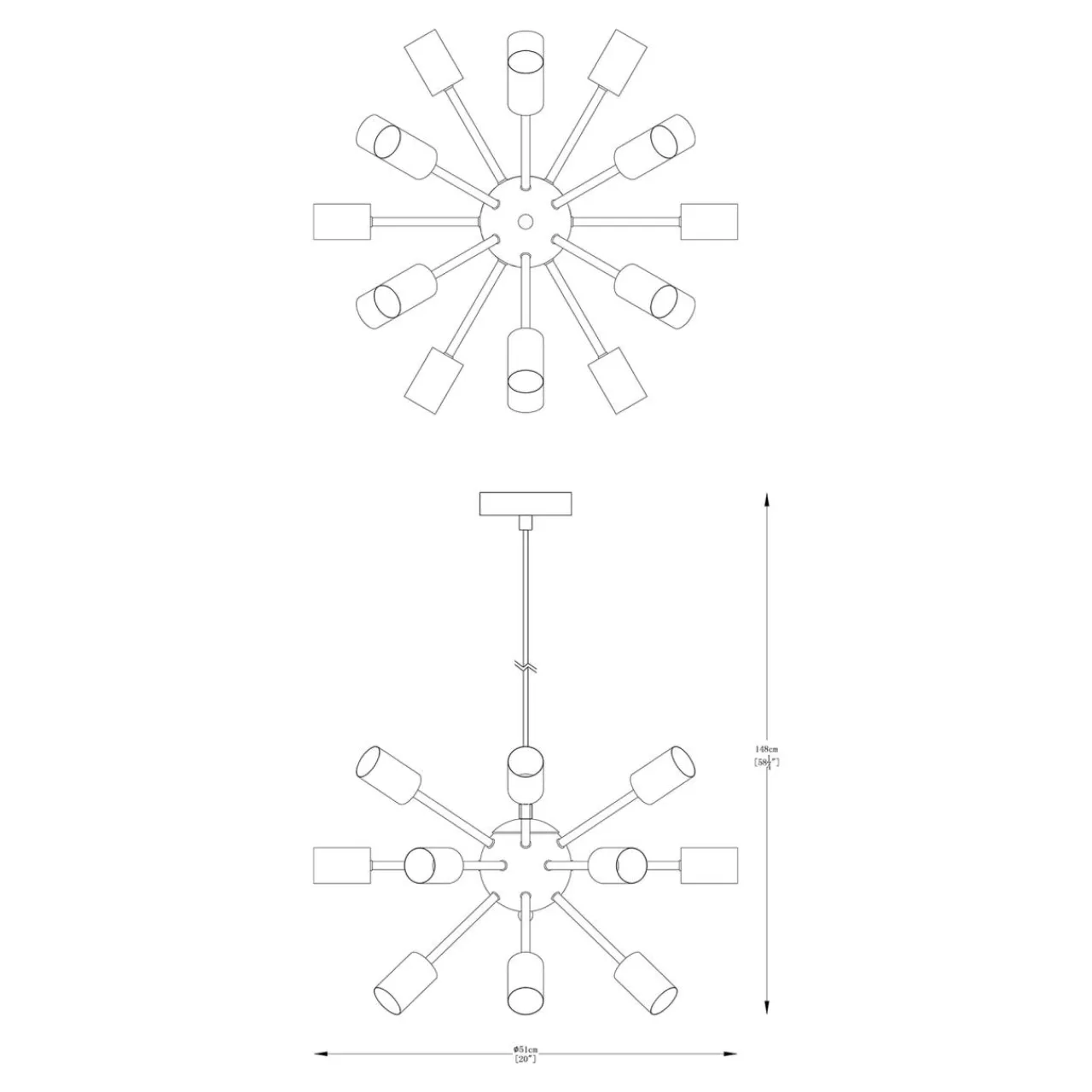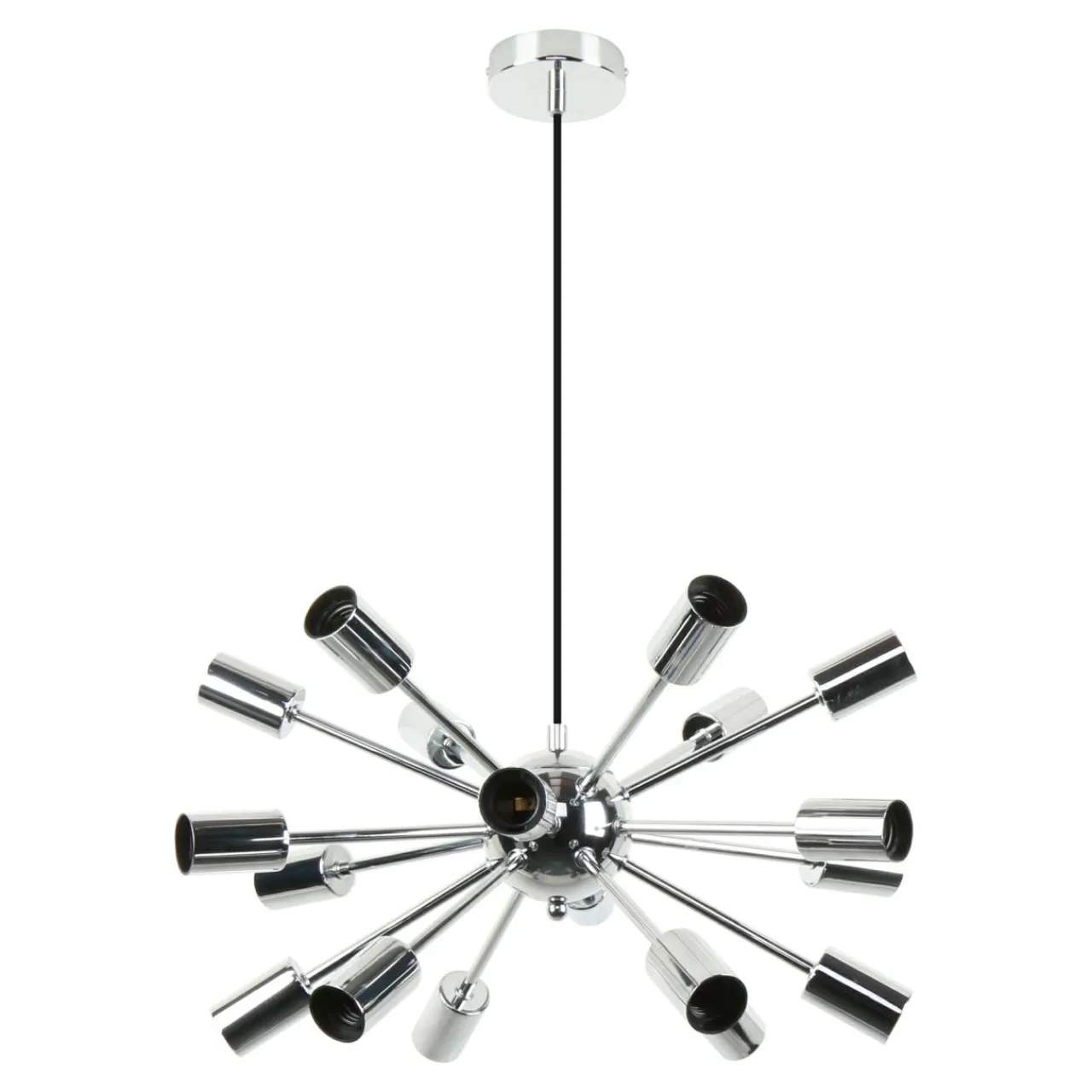 Wisząca lampa do salonu MANDI posiada oprawę przystosowaną aż dla 18 żarówek typu E27 o mocy maksymalnej 40W.