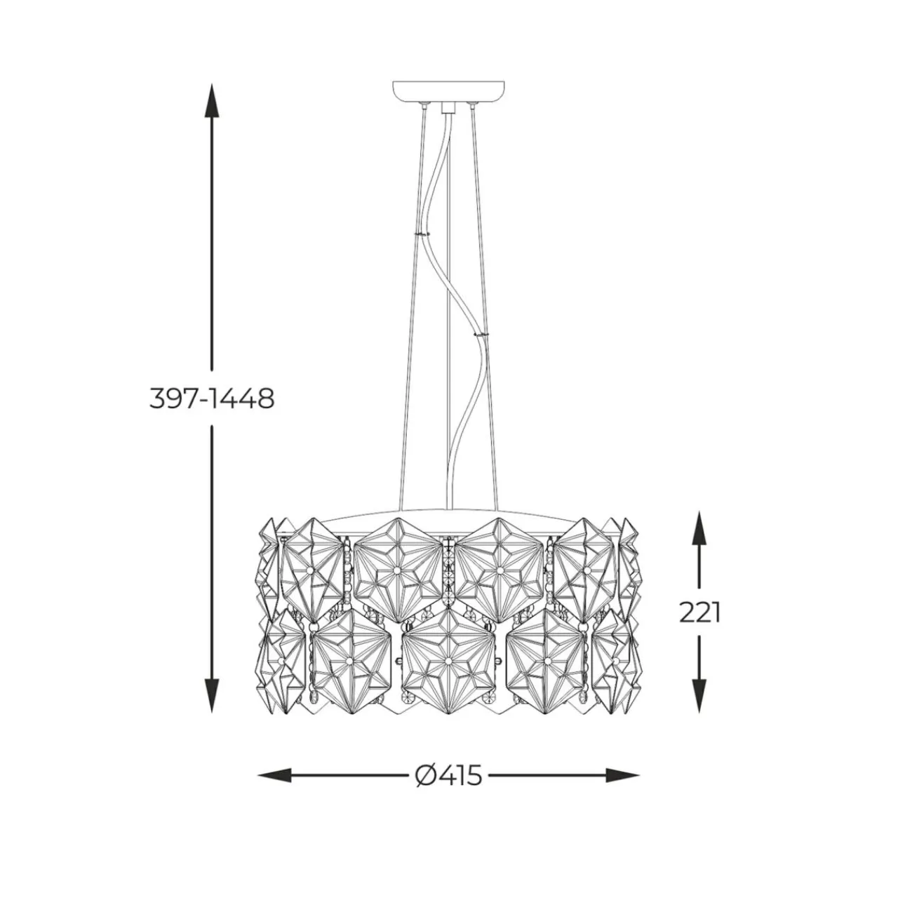 - DAVI posiada okazały klosz o średnicy 41 cm, złożony z nachodzących na siebie szklanych ozdób ściętych na podobieństwo kryształów.