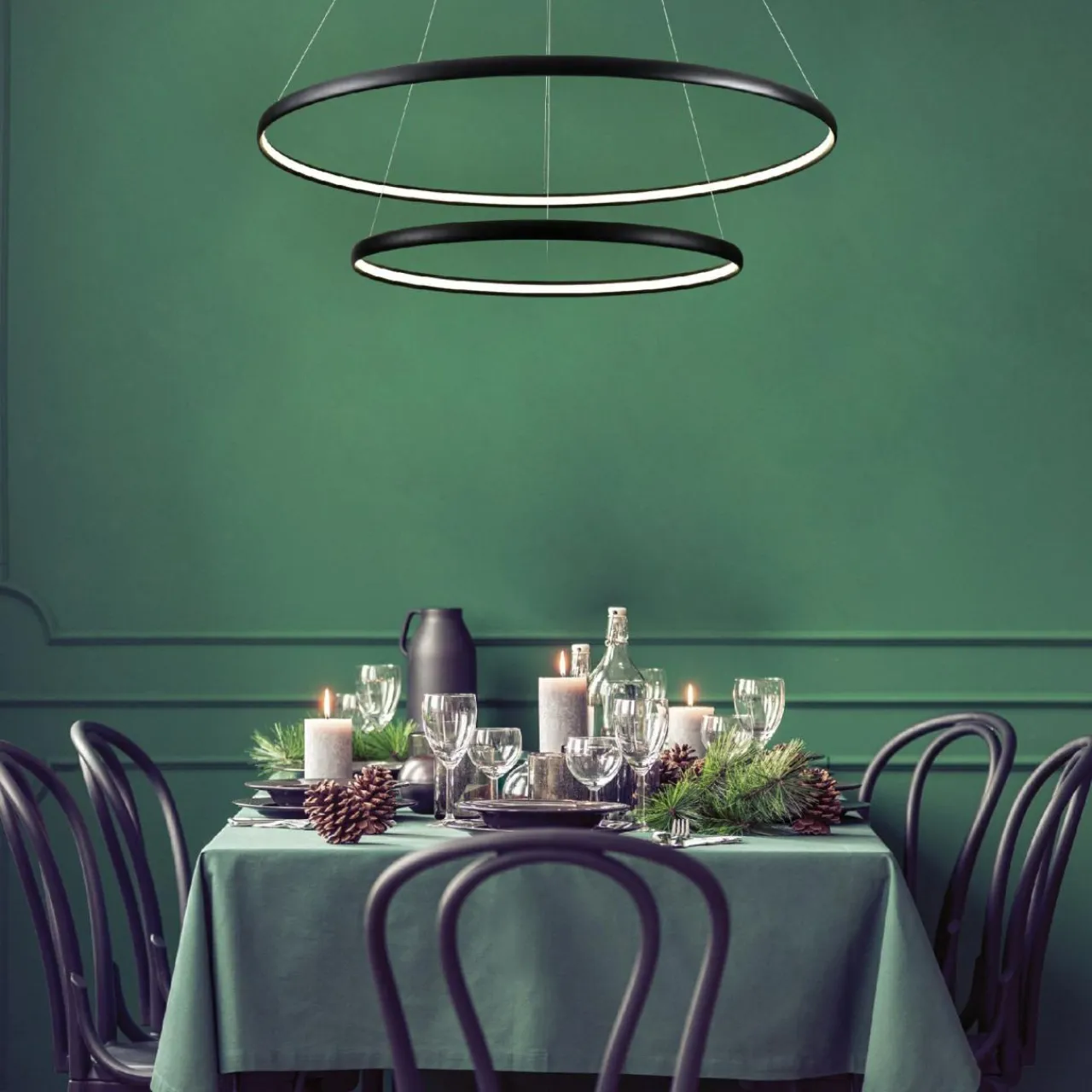 Średnica ok. 120 cm sprawia, że lampa najpełniej prezentuje się we przestronnym wnętrzu. Można ją zamontować jako górne oświetlenie w jadalni lub pokoju dziennym.