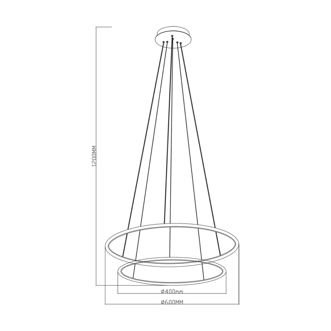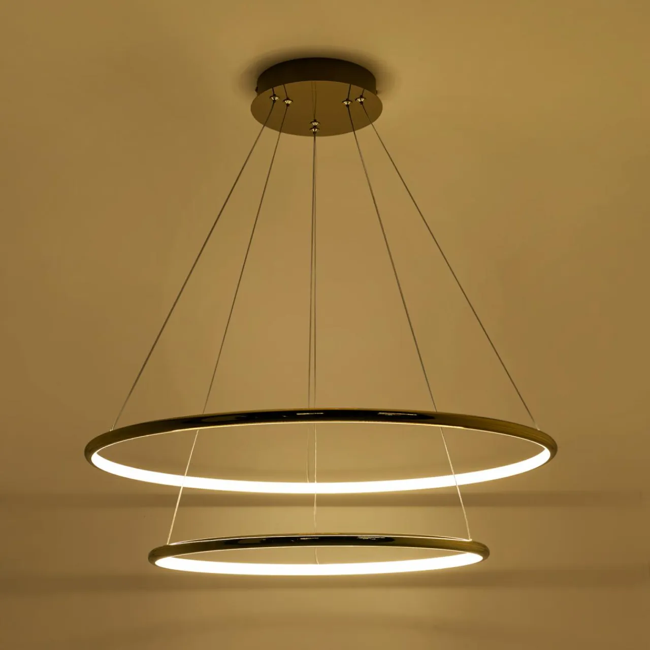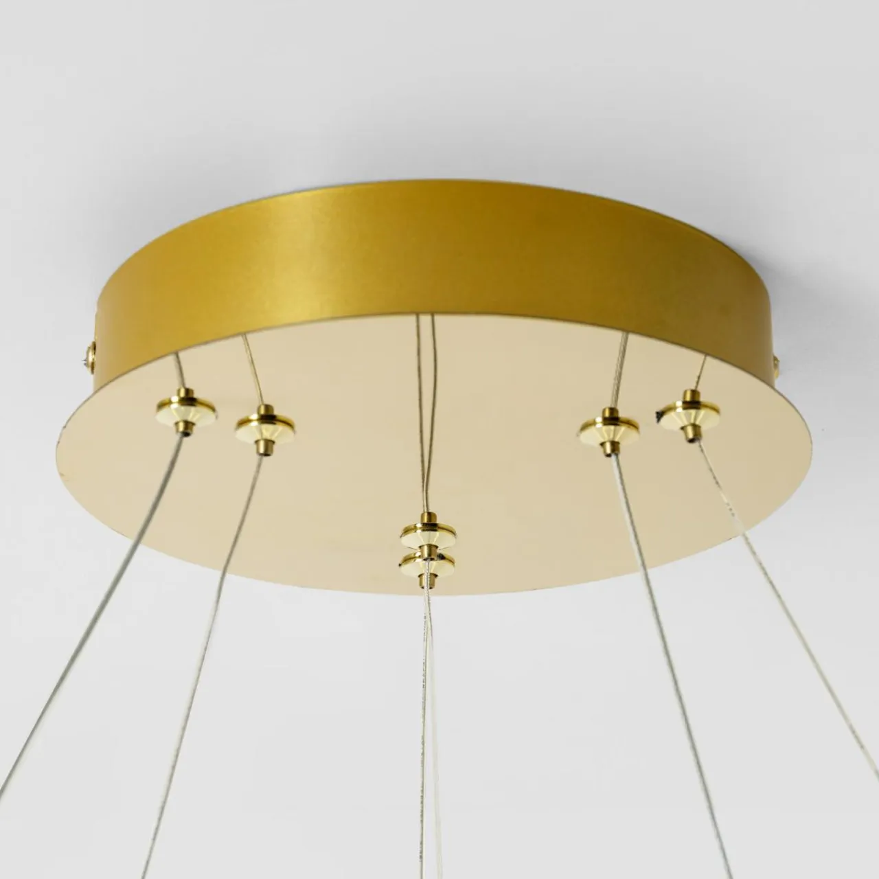 Posiada niewielka, okrągłą podsufitkę, od której biegną linki mocujące dla 2 pierścieni z wbudowanym oświetleniem LED.