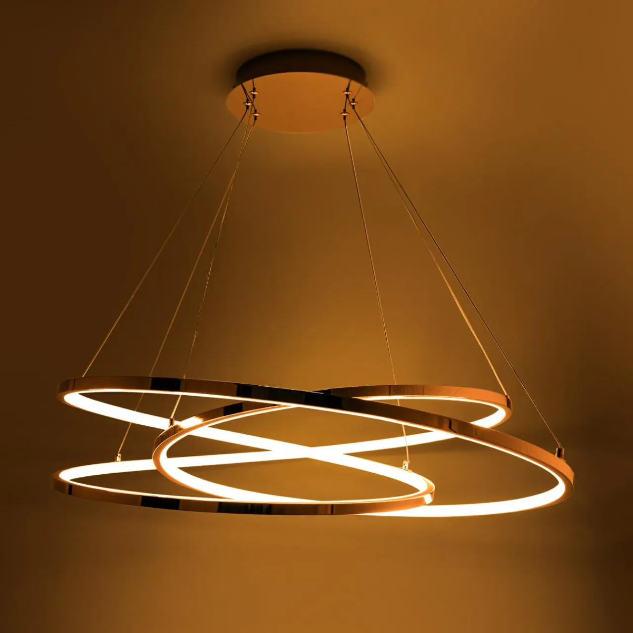 Zintegrowane z elementami dekoracyjnymi oświetlenie LED w lampie wiszącej CHOLET ma moc 60W oraz strumień świetlny rzędu 6600 lumenów.