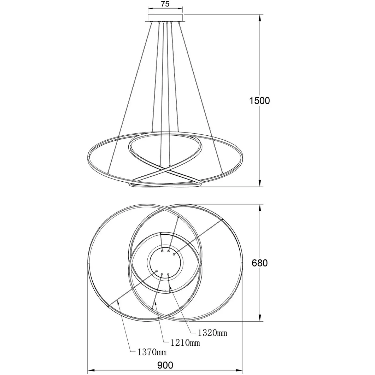 Posiada maksymalną długość zawieszenia 150 cm.