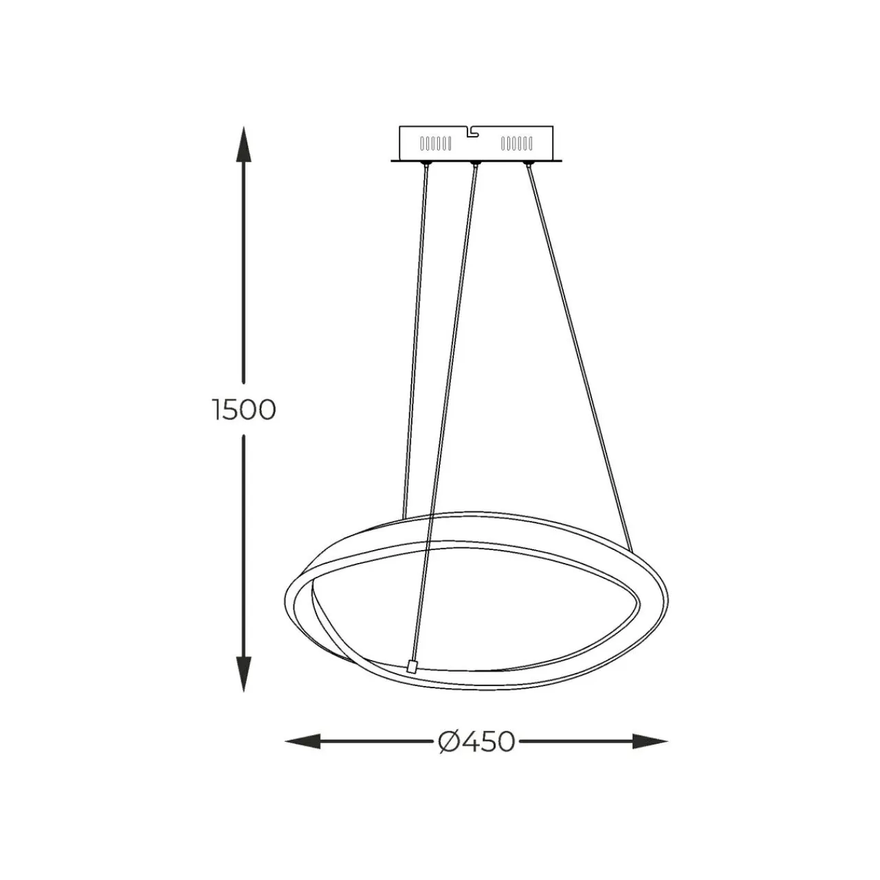 Lampa wisząca GIRONA idealnie sprawdza się w pomieszczeniach z wysokim sufitem. Przy średnicy 45 cm, jej maksymalna długość zawieszenia wynosi 150 cm.