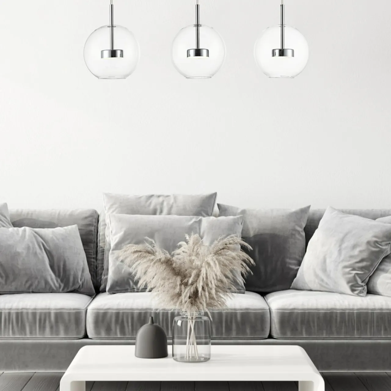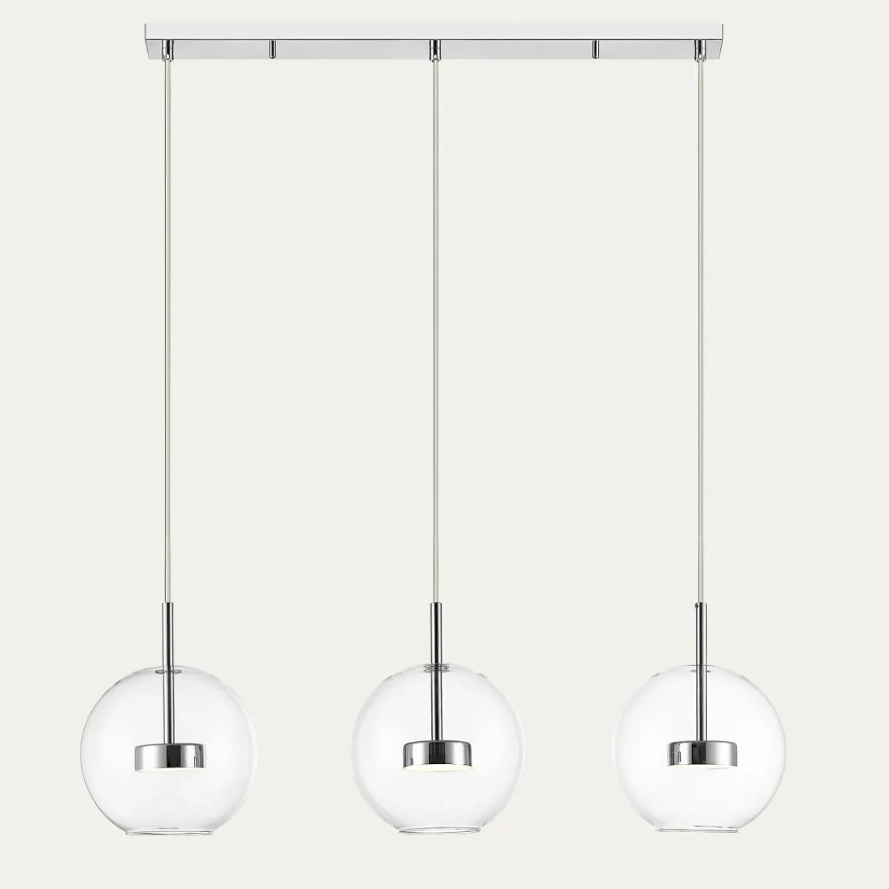 - ENCELADUS z 3 kloszami szeregowo zawieszonymi na listwie stawia na funkcjonalną formę i oświetlenie, którego wysokość możesz regulować.