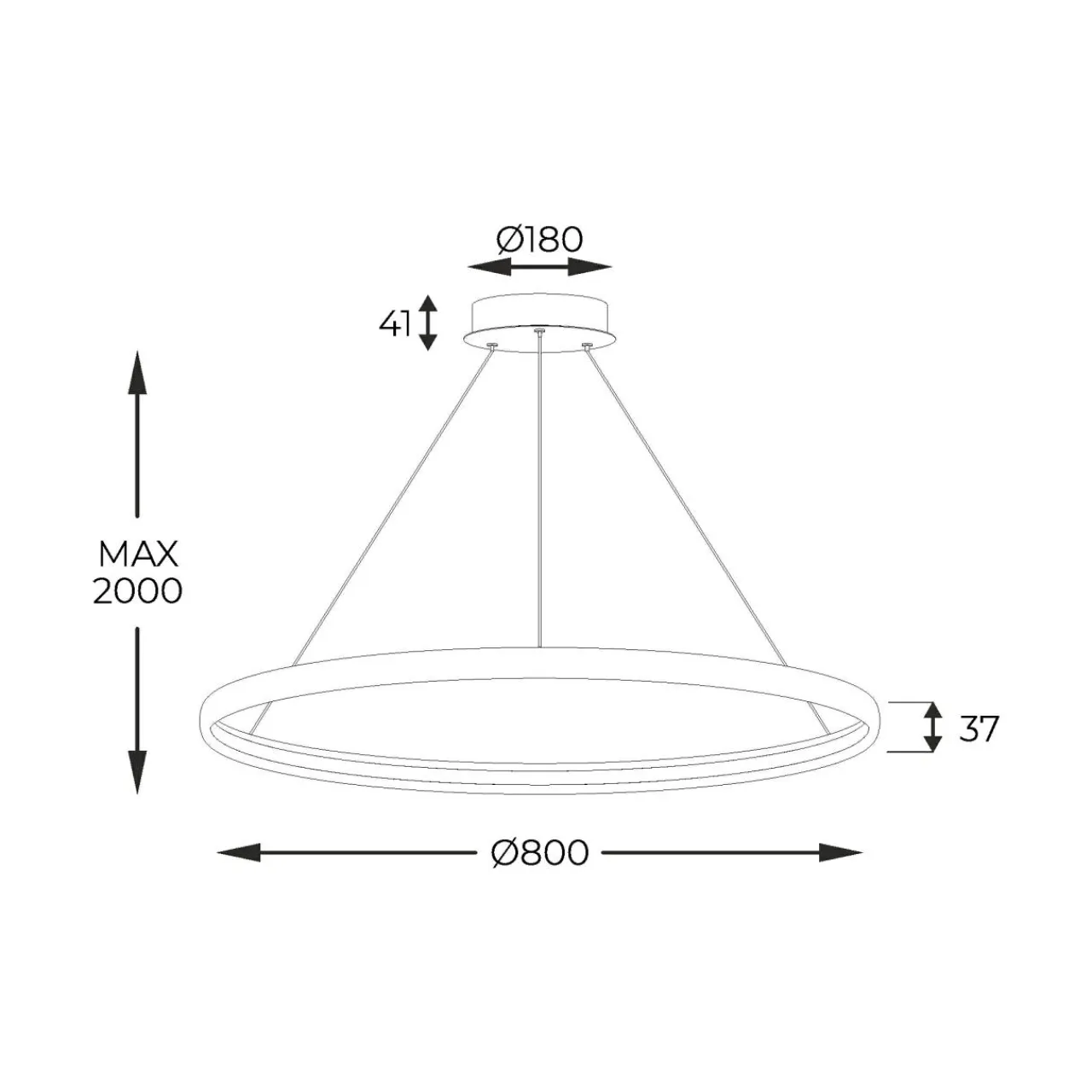 Maksymalna długość zawieszenia lampy to 200 cm, co sprawia, że idealnie nadaje się do pomieszczeń z wysokim sufitem.