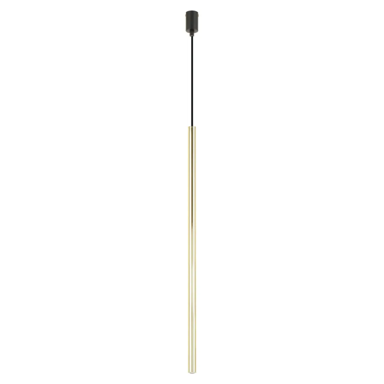 Złote wykończenie oraz kształt wąskiej tulei przykuwa wzrok i sam w sobie jest elementem dekoracyjnym. Zestawisz je z oszczędnym w formie meblami opartymi na czerni oraz drewnie.