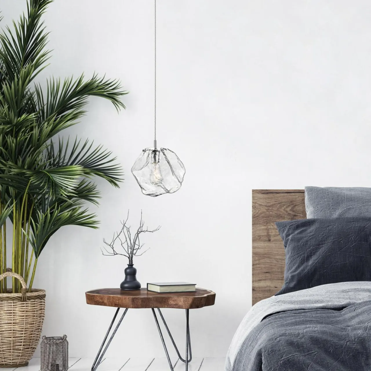 Przeźroczysty szklany klosz przywodzący na myśl fragment skały dodaje kolorytu i urokliwie wygląda w połączeniu z ozdobną żarówką.