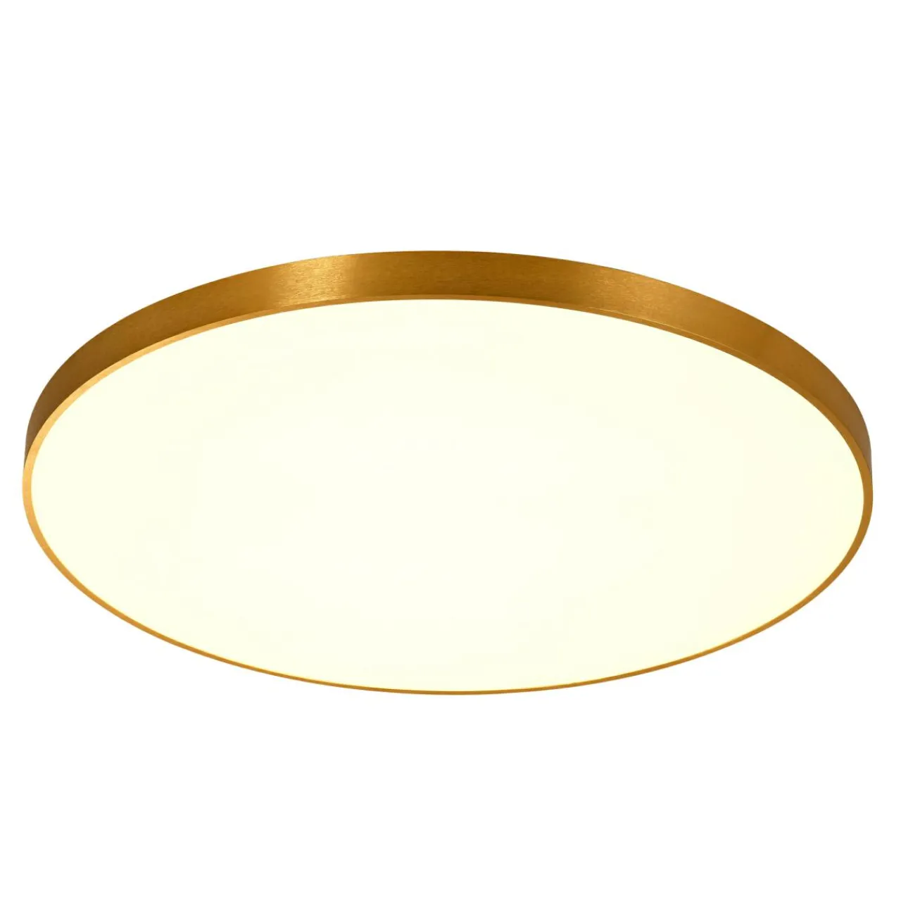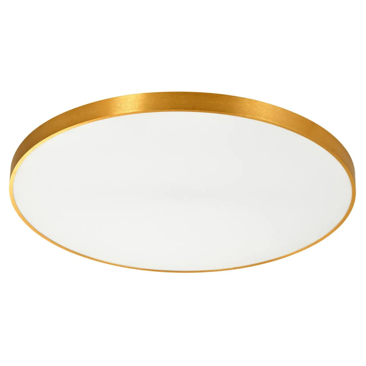 Klasyczny, okrągły kształt doskonale prezentuje się w przestronnych wnętrzach salonu. W wysmakowany sposób urozmaica przestrzeń, a wykończenie obudowy w złotym kolorze współgra z mlecznobiałym kloszem i w subtelny sposób podkreśla nowoczesny, elegancki styl lampy.