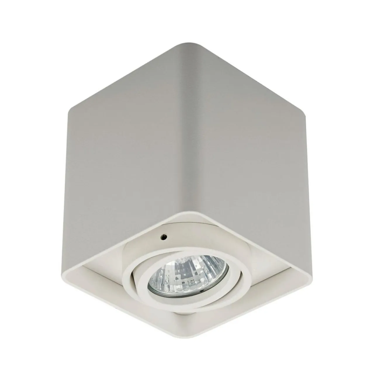 Spot QUADRO posiada oprawę dla pojedynczej żarówki typu GU10 o mocy maksymalnej 50W.