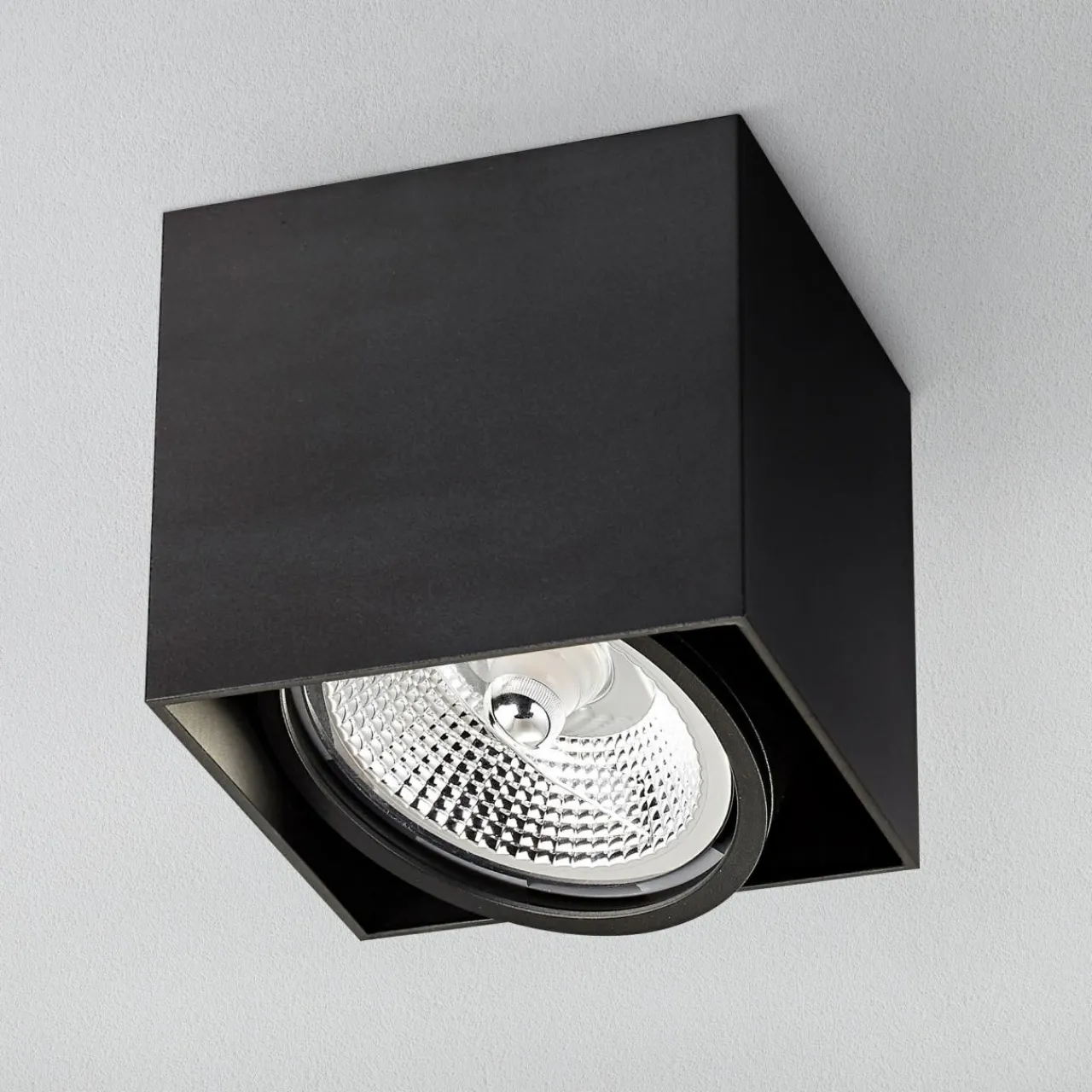 Prosta, geometryczna budowa lampy na bazie sześcianu daje duże możliwości aranżacyjne, a minimalistyczna forma z punktowym światłem świetnie wkomponowuje się w przestrzeń.