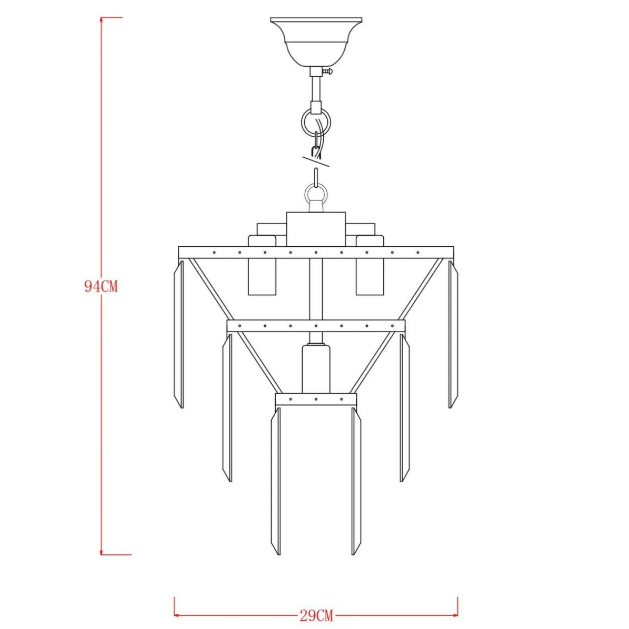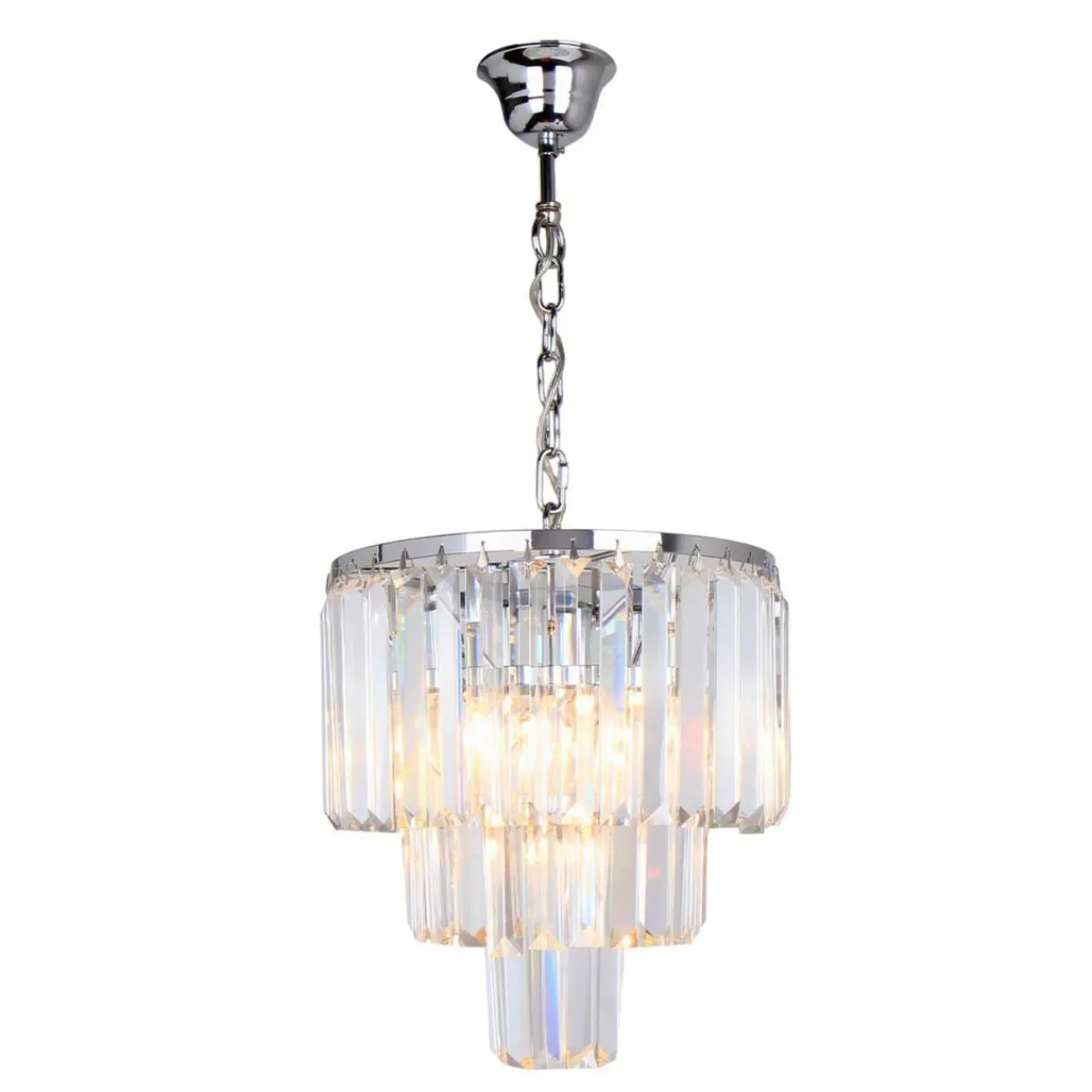 Uwagę zwracają przede wszystkim dekoracyjne walory lampy. Szklane kryształki zawieszone na metalowej podstawie uformowane są w czterech okręgach na wzór kaskady – od największego do najmniejszego. Całość tworzy ciekawe wrażenie estetyczne. Natomiast po zapaleniu światła lampa ozdabia sufit i ściany urokliwymi refleksami.
