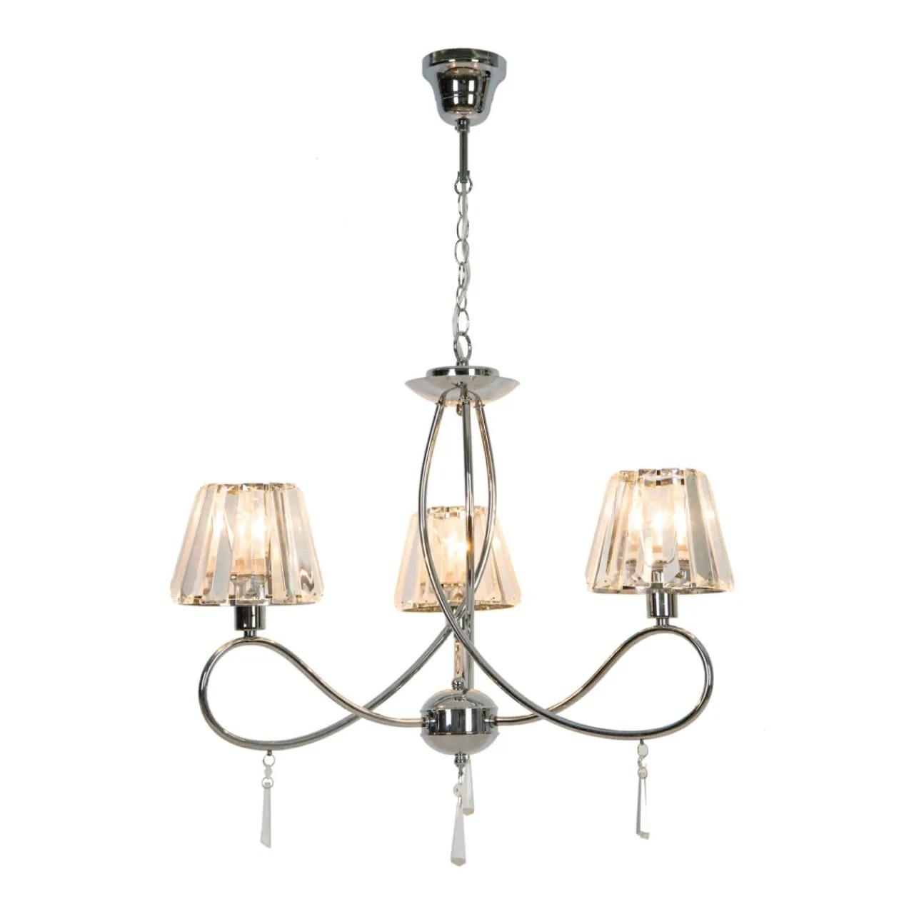 Baza lampy została wykonana z metalu, podobnie fantazyjnie wygięte ramiona. Całość wieńczą półprzejrzyste, ozdobne klosze. Po zapaleniu lampy światło ozdabia sufit i ściany urokliwymi refleksami dopełniając wystroju wnętrza pod kątem estetycznym.