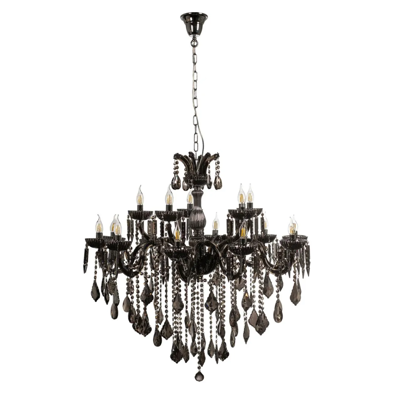 Misternie wykonane elementy dekoracyjne świetnie oddają ducha minionej epoki, a światło efektownie załamuje się na licznych kryształkach oraz połyskującej ciemnym chromem podstawie.