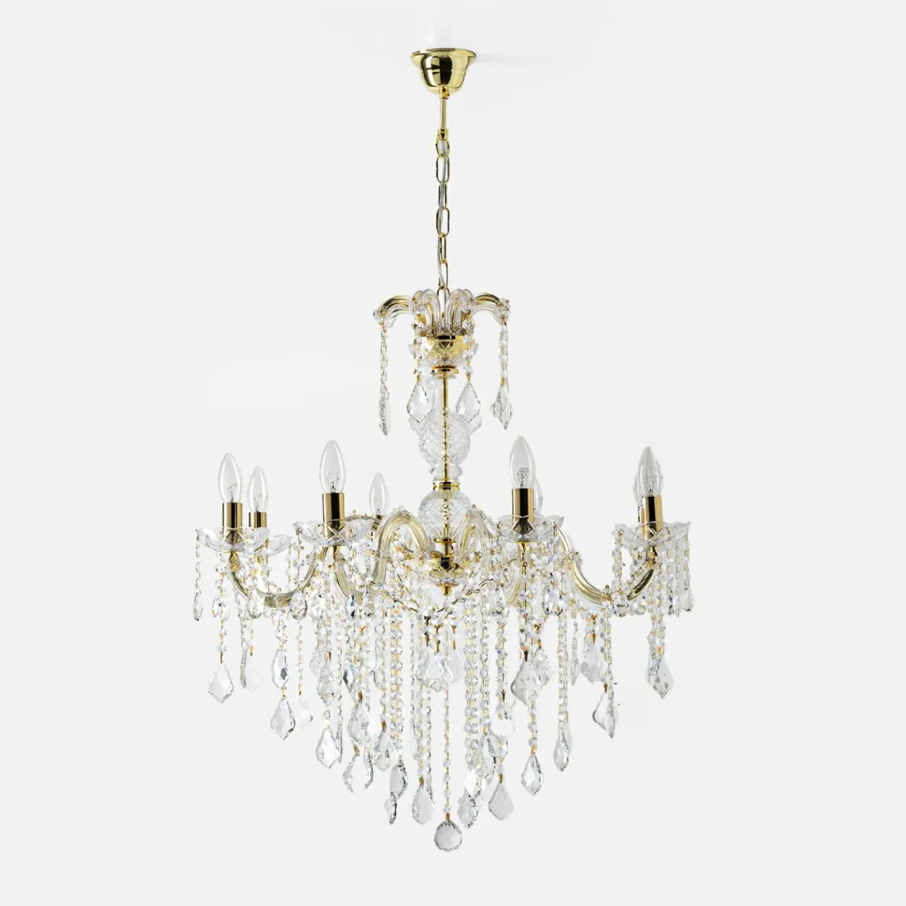 - Moc światła w sam raz na bal – 8 żarówek potrafi oświetlić przestronny salon lub jadalnię, rozjaśniając każdy kąt pomieszczenia. Lampa ma aż 100 cm średnicy.