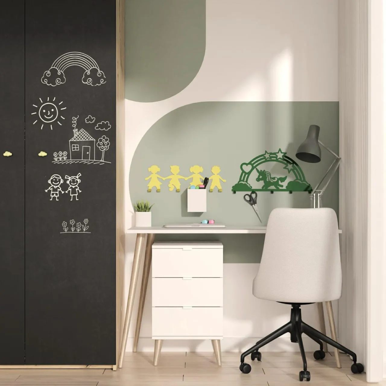 Ozdobny, zielony wieszak JEDNOROŻEC jest częścią kolekcji KIDDON ADBOX – mebli modułowych, przeznaczonych specjalnie do pokoju naszej pociechy.