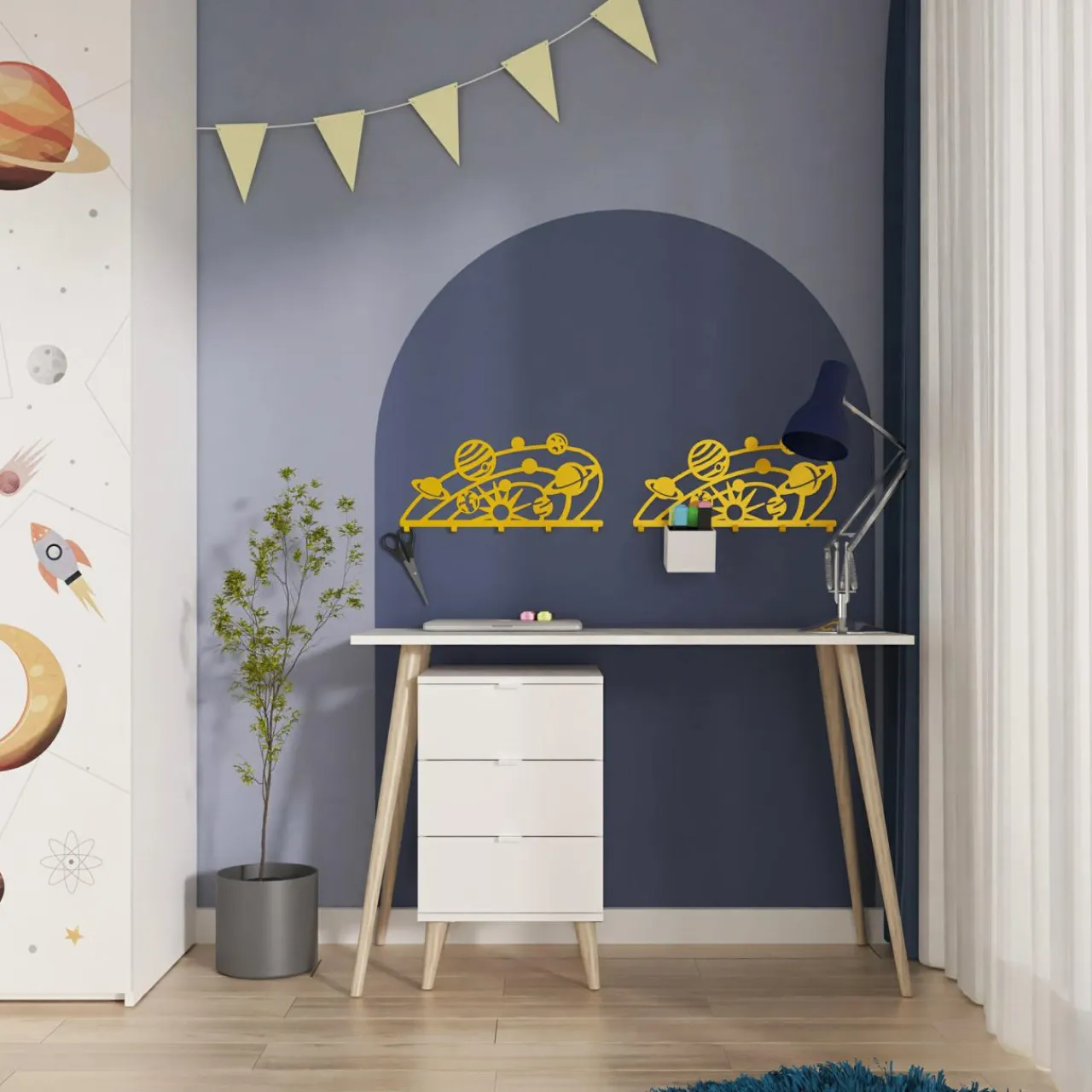 - Ozdobny, żółty wieszak KOSMOS jest częścią kolekcji KIDDON ADBOX – mebli modułowych, przeznaczonych specjalnie do pokoju naszej pociechy.