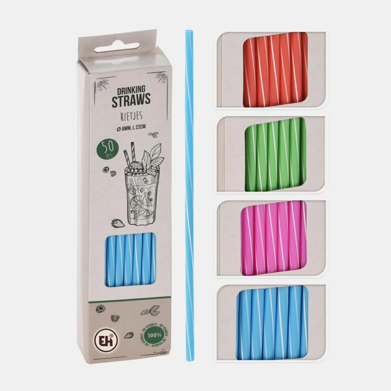 Akcesoria Do Wina I Drinków|inny Komplet słomek wielorazowych, 50 sztuk MIX