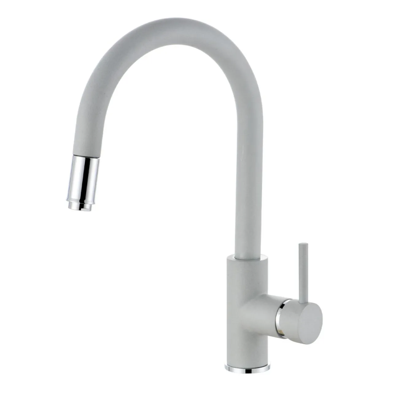 Poręczne sterowanie baterii i umieszczony z boku mieszacz pozwala płynnie kierować siłą strumienia oraz temperaturą wody. Dodatkowo wyciągana wylewka pozwala na dokładniejsze mycie naczyń.