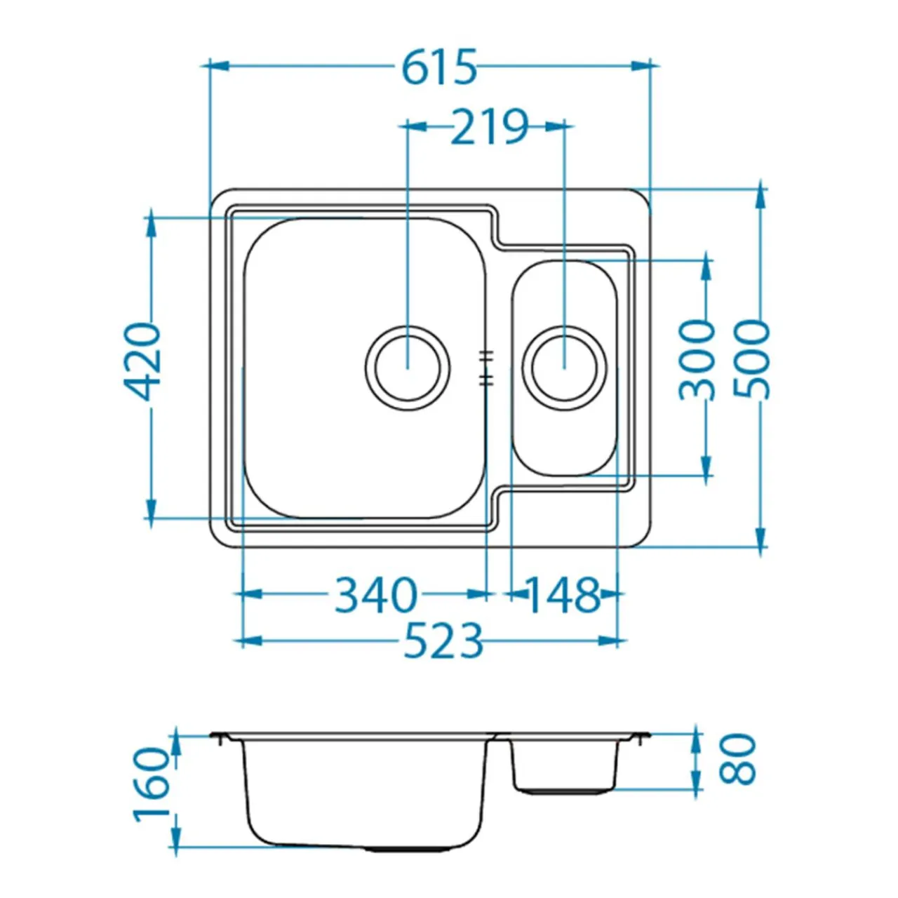 - Zlewozmywak przeznaczony został pod szafkę o minimalnej szerokości 60 cm – jako zlewozmywak nakładany.