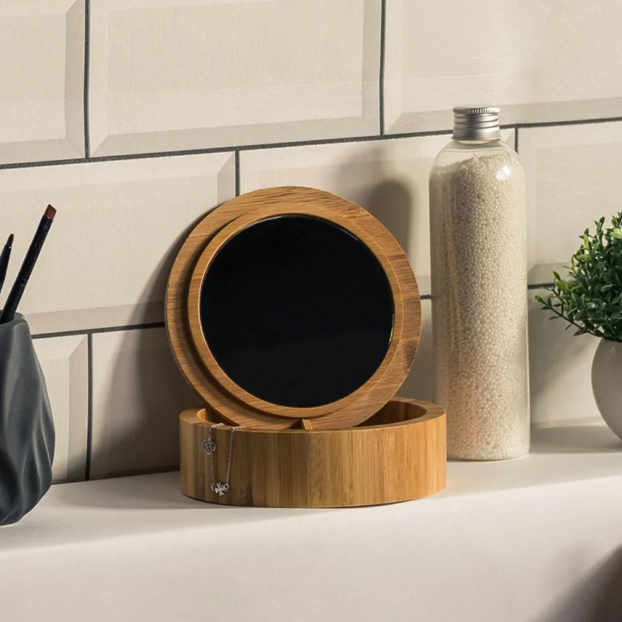 Bambusowe pudełko organizer z lusterkiem