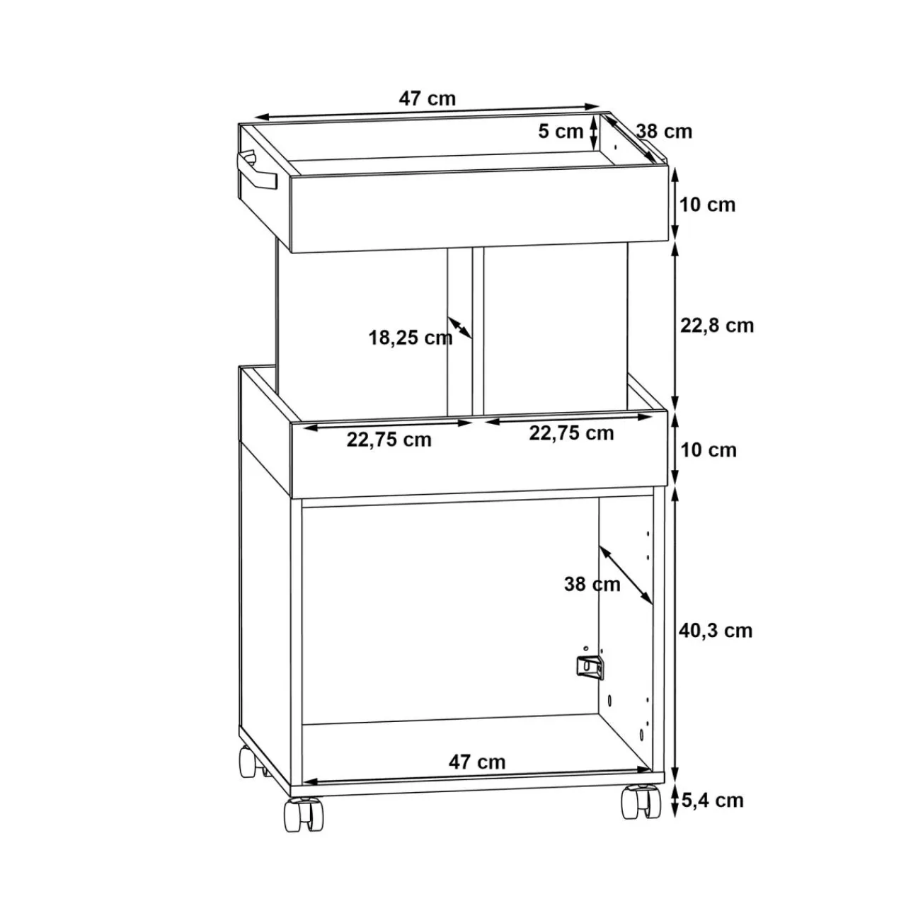 - Podstawą szafki barowej są 4 kółka. Bez większego wysiłku przemieścisz barek z kuchni do jadalni czy salonu.