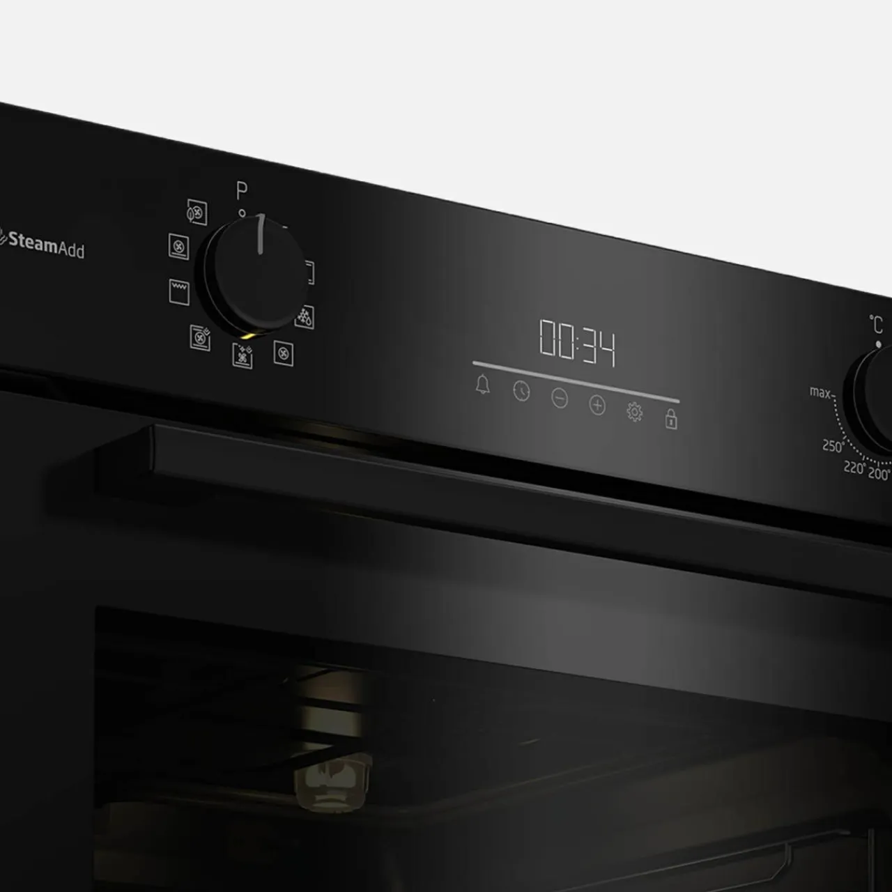 Czyszczenie piekarnika nigdy nie było tak proste! Wystarczy wylać trochę wody na tacę piekarnika i włączyć odpowiedni program – para wodna osadzi się na jego ściankach, ułatwiając czyszczenie.