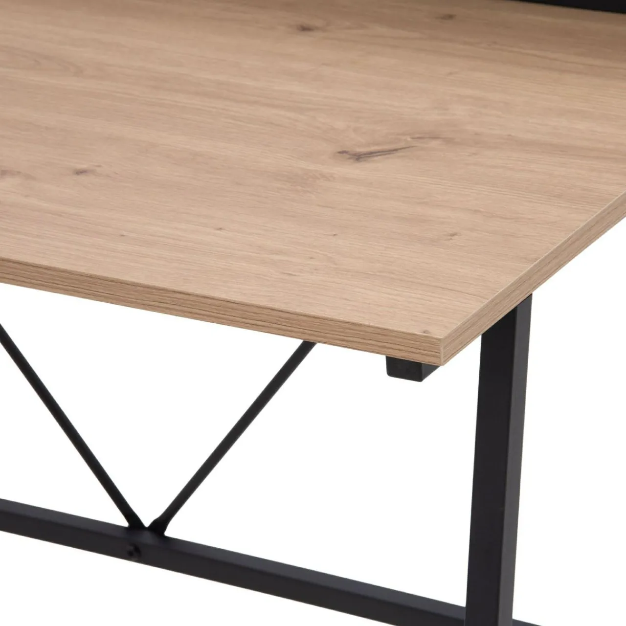 Blat biurka został wykończony okleiną drewnopodobną. Rysunek sęków i słojów przypominają naturalne drewno dębowe.