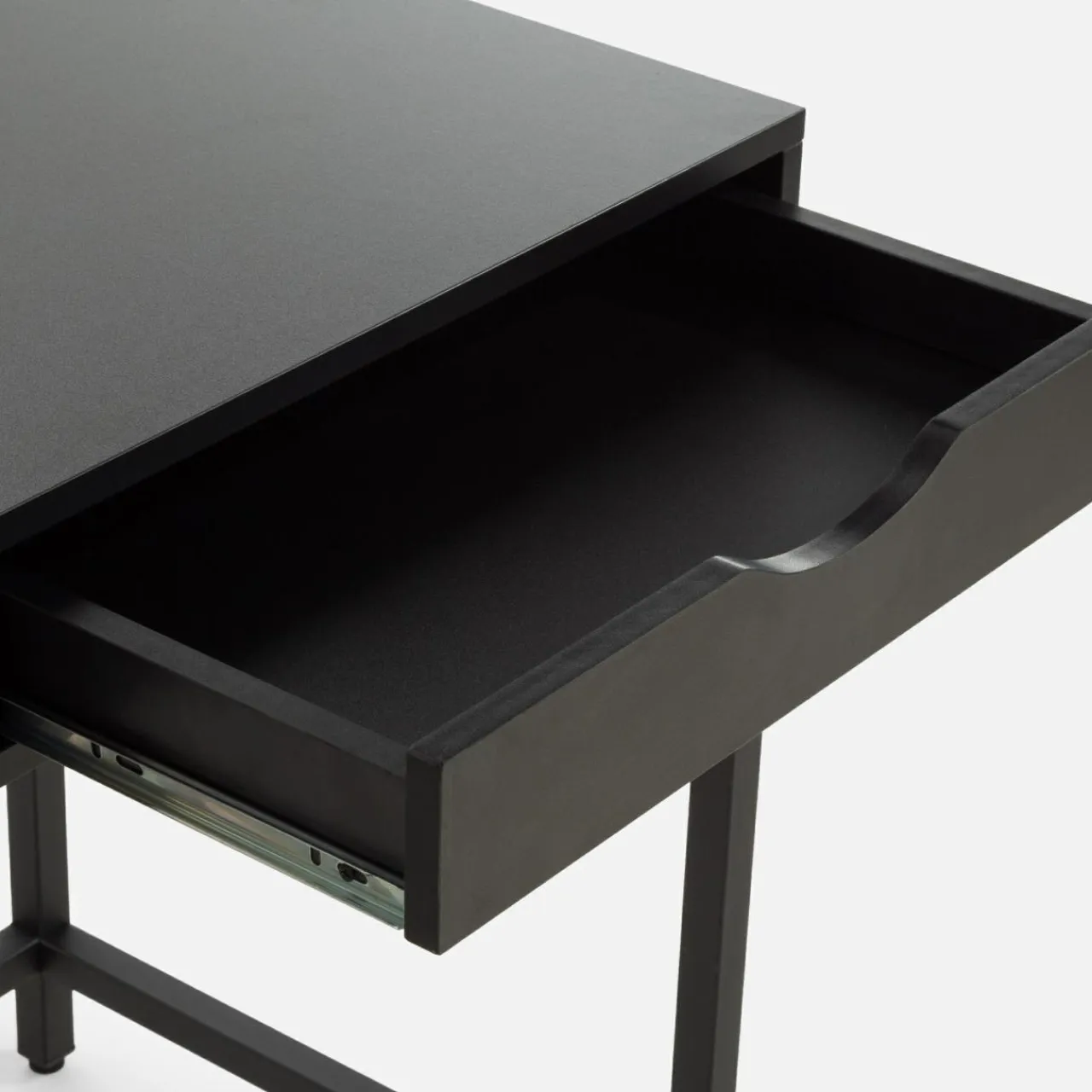 - Czarny kolor – elegancka barwa sprawia, że biurko świetnie wpisuje się w nowoczesne aranżacje wnętrz.