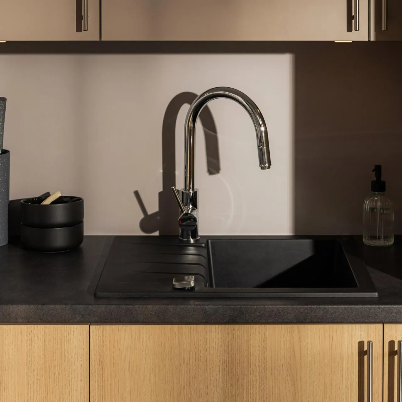 Utrzymany w ciemnej kolorystyce jest przeznaczony dla kuchni urządzonych w nowoczesnym stylu. Jego powierzchnia bazuje na odcieniach czerni oraz szarości. W interesujący sposób obrazuje nieregularnie umieszczone przebarwienia oraz fakturę materiału, która przypomina skałę. Dekor blatu doskonale prezentuje się w połączeniu z jaśniejszymi akcentami oraz kremowym lub białym kolorem ścian i mebli.
