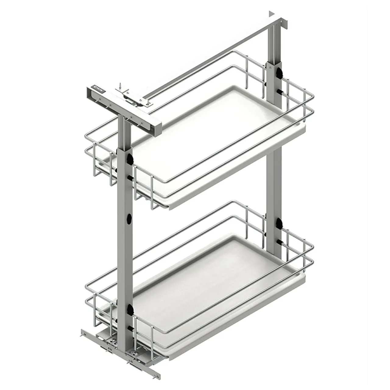 INSIDE CARGO to system wysuwanych na zewnątrz 2 półek, na których można umieścić produkty żywnościowe, narzędzia kuchenne, przyprawniki lub naczynia. Ich wysokość można regulować za pomocą zaczepów.
